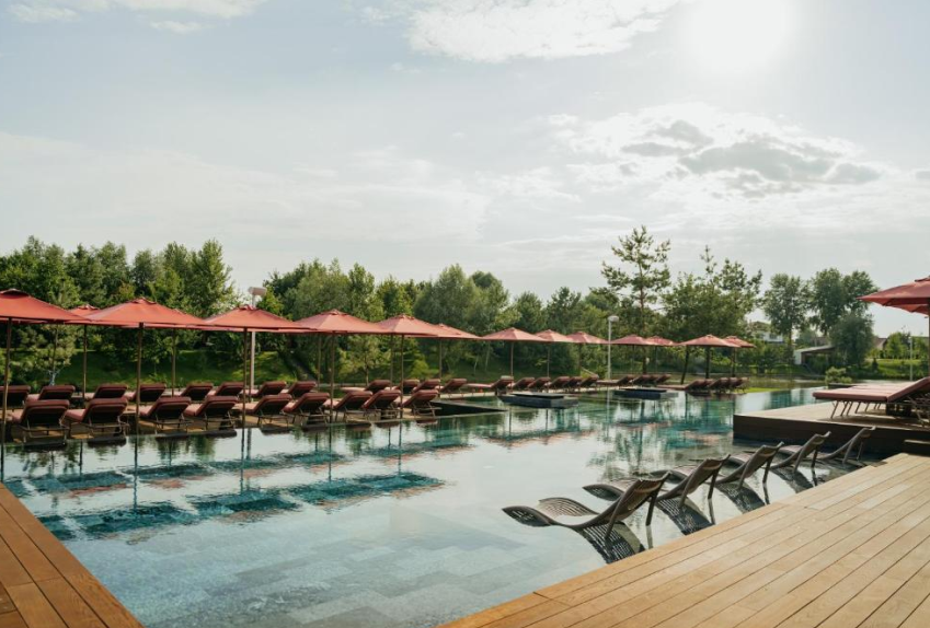 На території розташований ресторан, а в літню пору гості можуть купатися в басейні, для дітей — окремий басейн. Також є чан, лазня та навіть зона для воркауту.