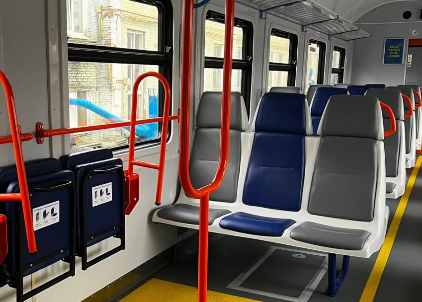 Тепер електричка має нові сидіння, систему освітлення, інклюзивні елементи: сповивальні столики, написи шрифтом Брайля, контрастне маркування, затишний і стильний салон.
