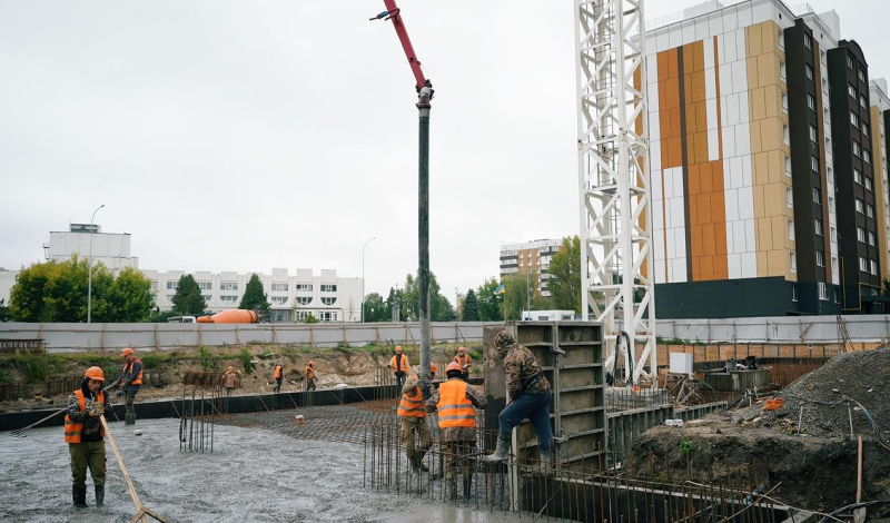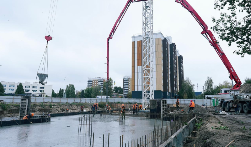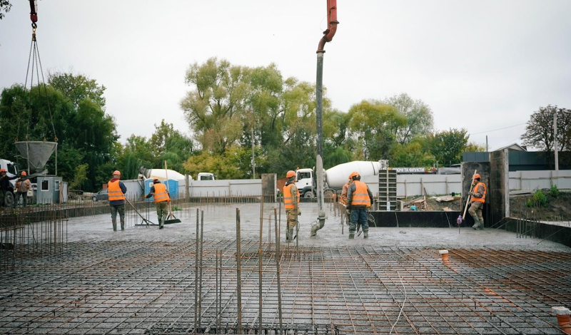 Наразі фахівці працюють над облаштуванням арматурного каркаса фундаментної плити, після чого розпочнуть зведення стін.