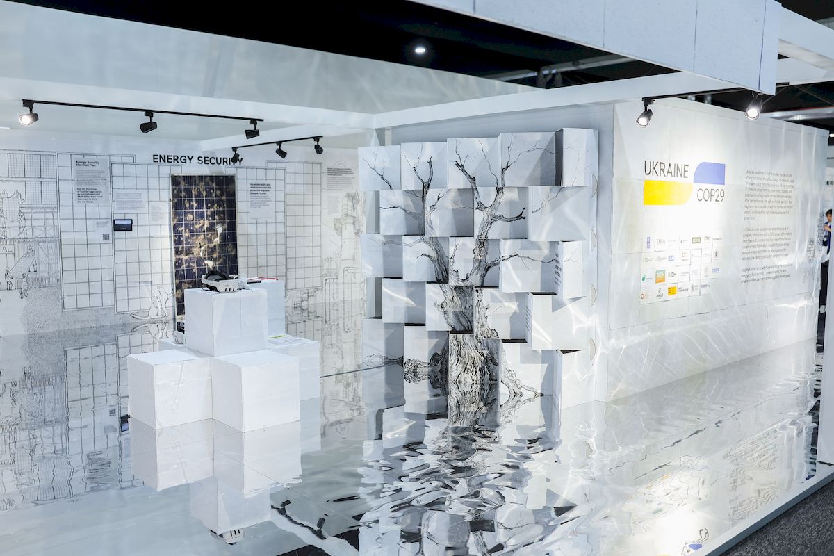 Український павільйон на саміті розповідав про "зелену" відбудову після обстрілів, "розумні" поля та інші українські ініціативи. Стіни павільйону площею 120 квадратних метрів, які розписала художниця Олександра Жумайлова, були зроблені з екопаперу з насінням, який розчиняється у ґрунті під впливом води й тепла. Ідея полягала у тому, що Україна живе і відновлюється попри російську агресію.