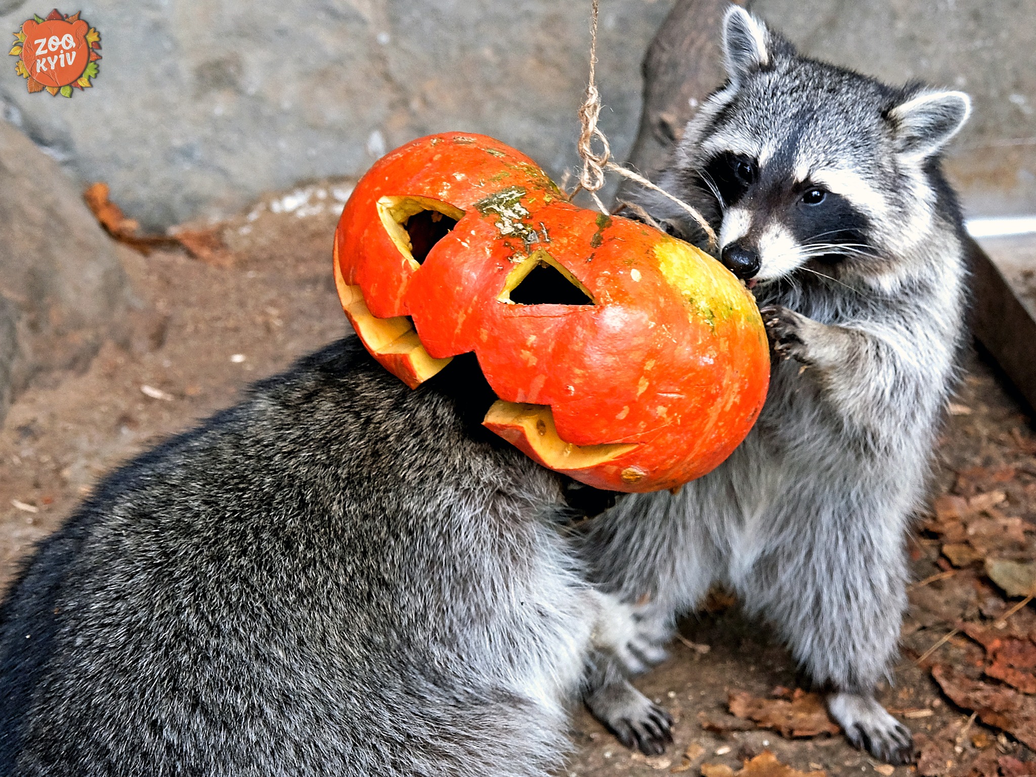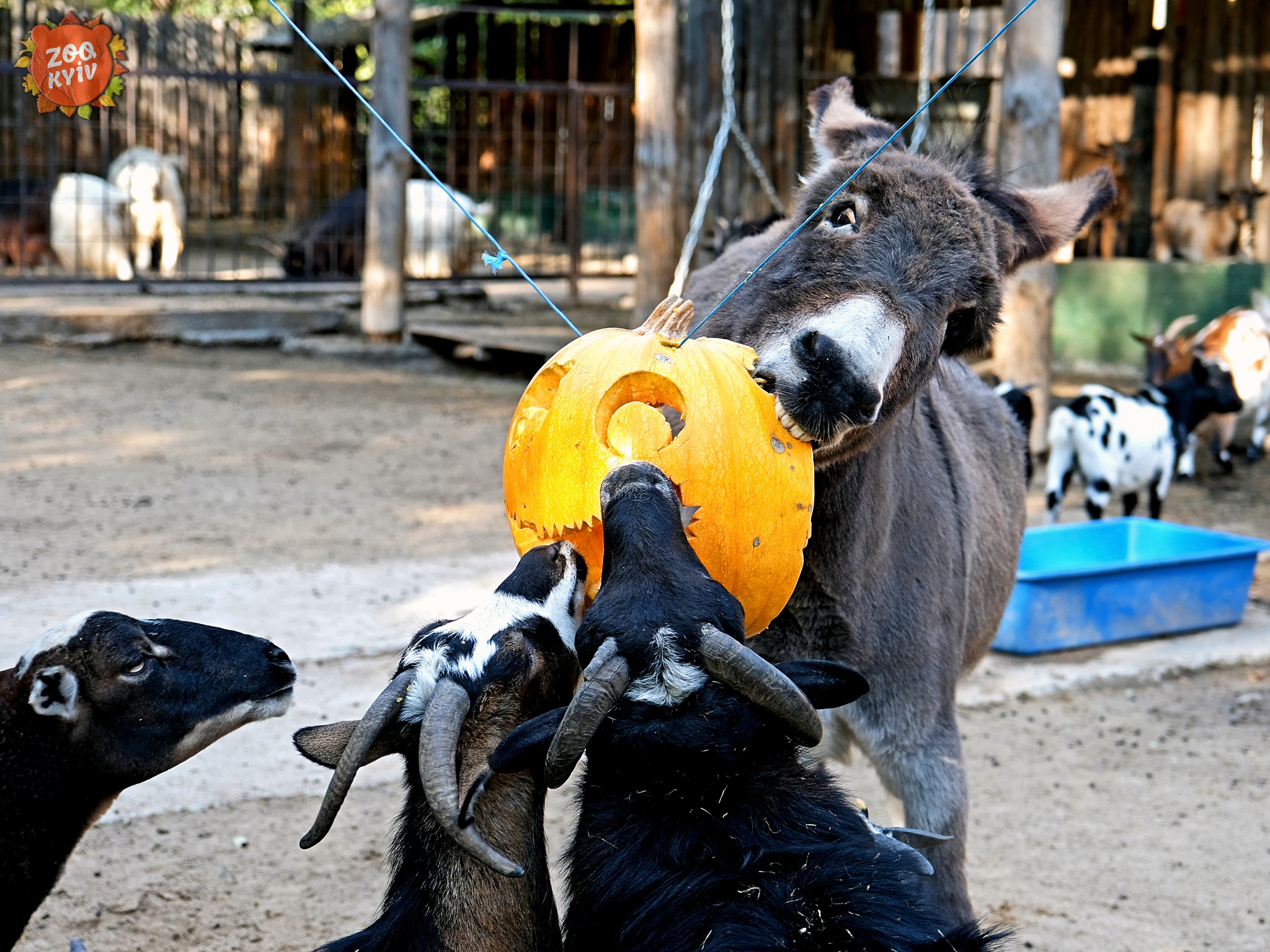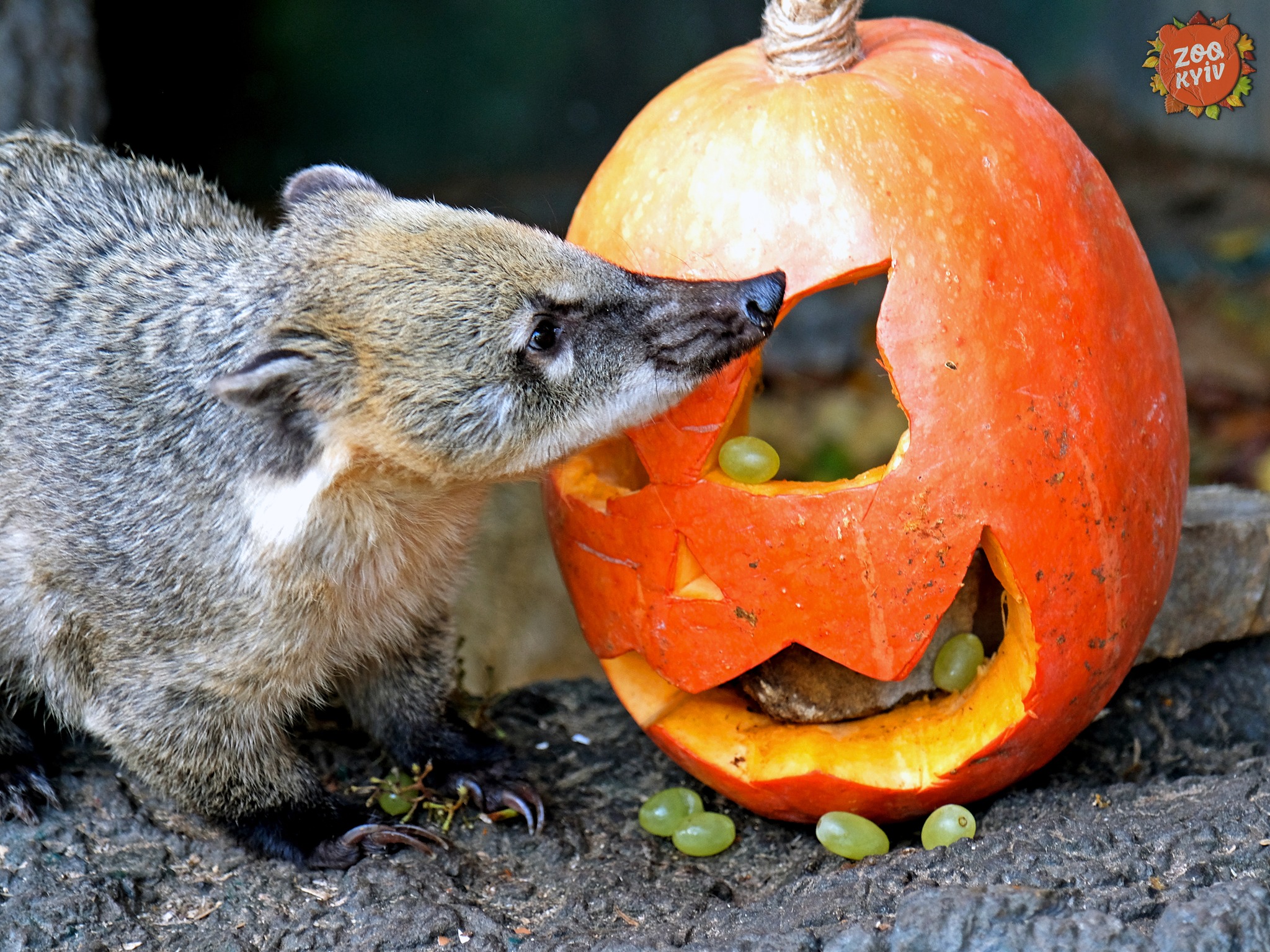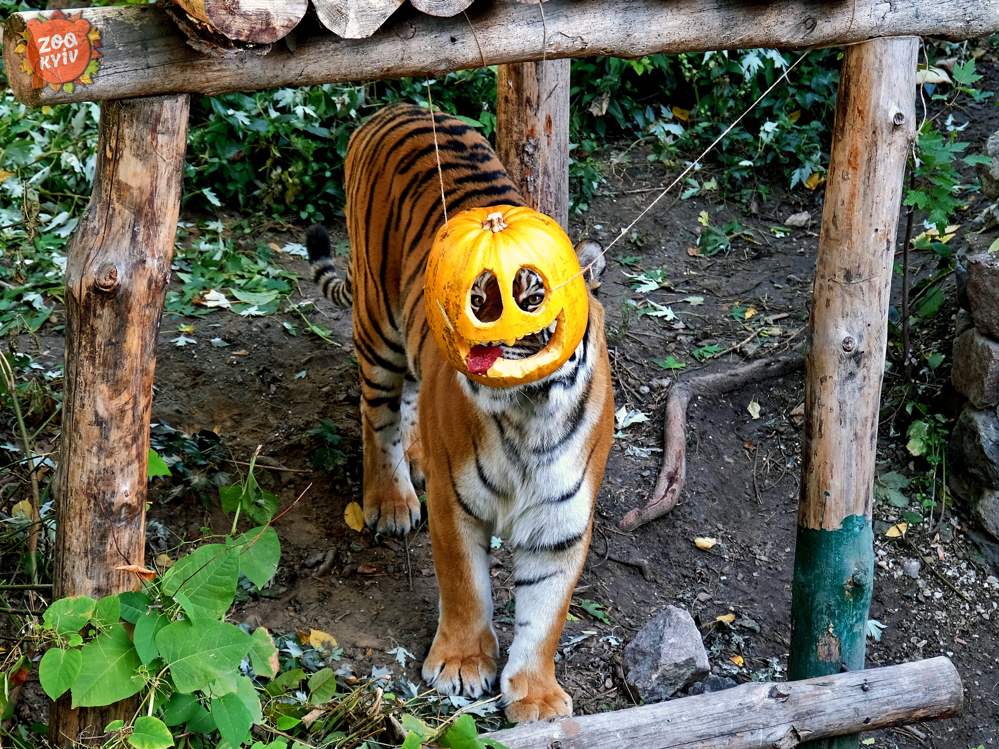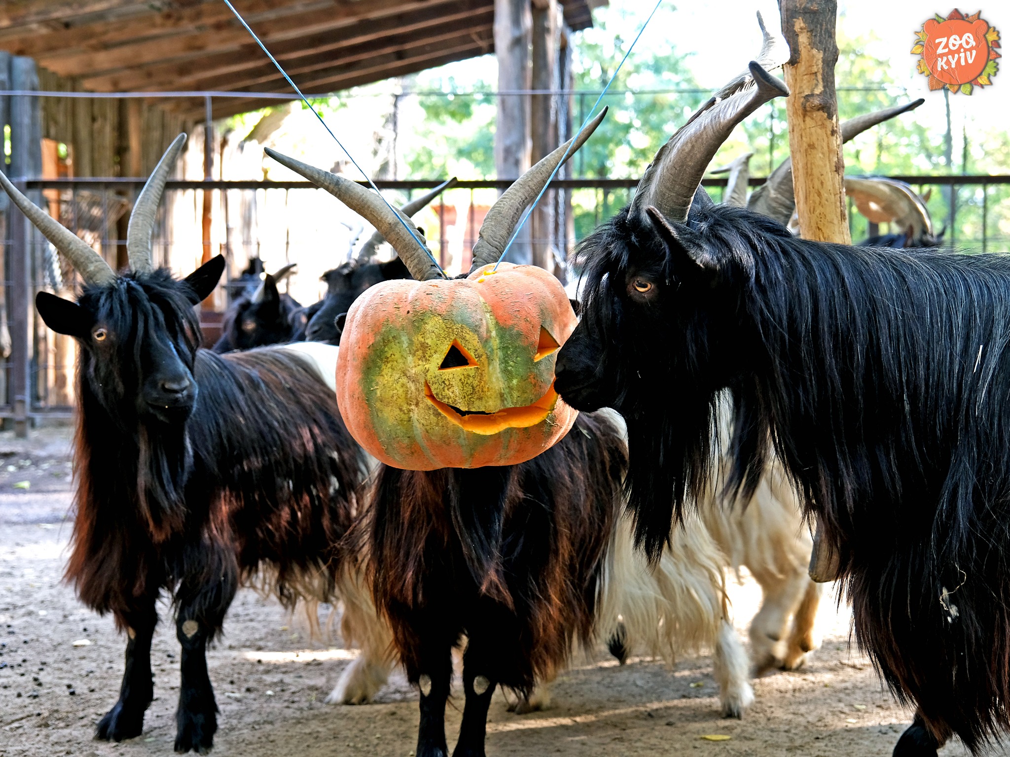 Київський зоопарк долучився до світової практики відзначання Гелловіну. Вольєри прикрасили гарбузами, які потім могли з'їсти тварини.
