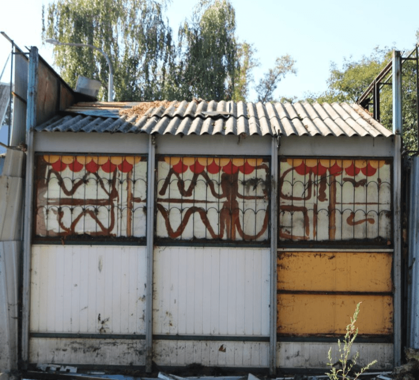 Як правило, їх фасади зібрані з різнотипних металевих листів, а в деяких місцях між кіосками облаштовані підсобні приміщення для зберігання побутових відходів чи будівельних матеріалів, а в окремих випадках добудовані саморобні навіси.