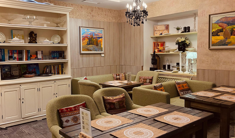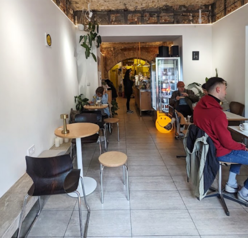 Кав'ярня відома своїми смачними тортами та десертами, які готують без продуктів тваринного походження.
