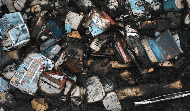 Внаслідок обстрілу Харкова згоріли книжки Симоненка, Іздрика та Кідрука Фото: "Суспільне Харків"