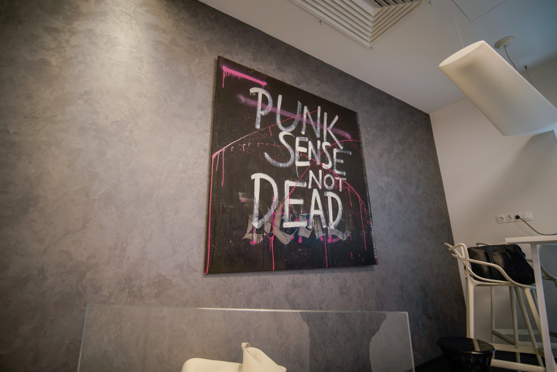 Неподалік — продовження зони коворкінгу, де також вирує творчий процес. Панківський дух тут доповнюють репродукції відомих картин, а ще доробки від українських митців. Уважні відвідувачі можуть побачити на стінах хамелеонів — це тутешній талісман.