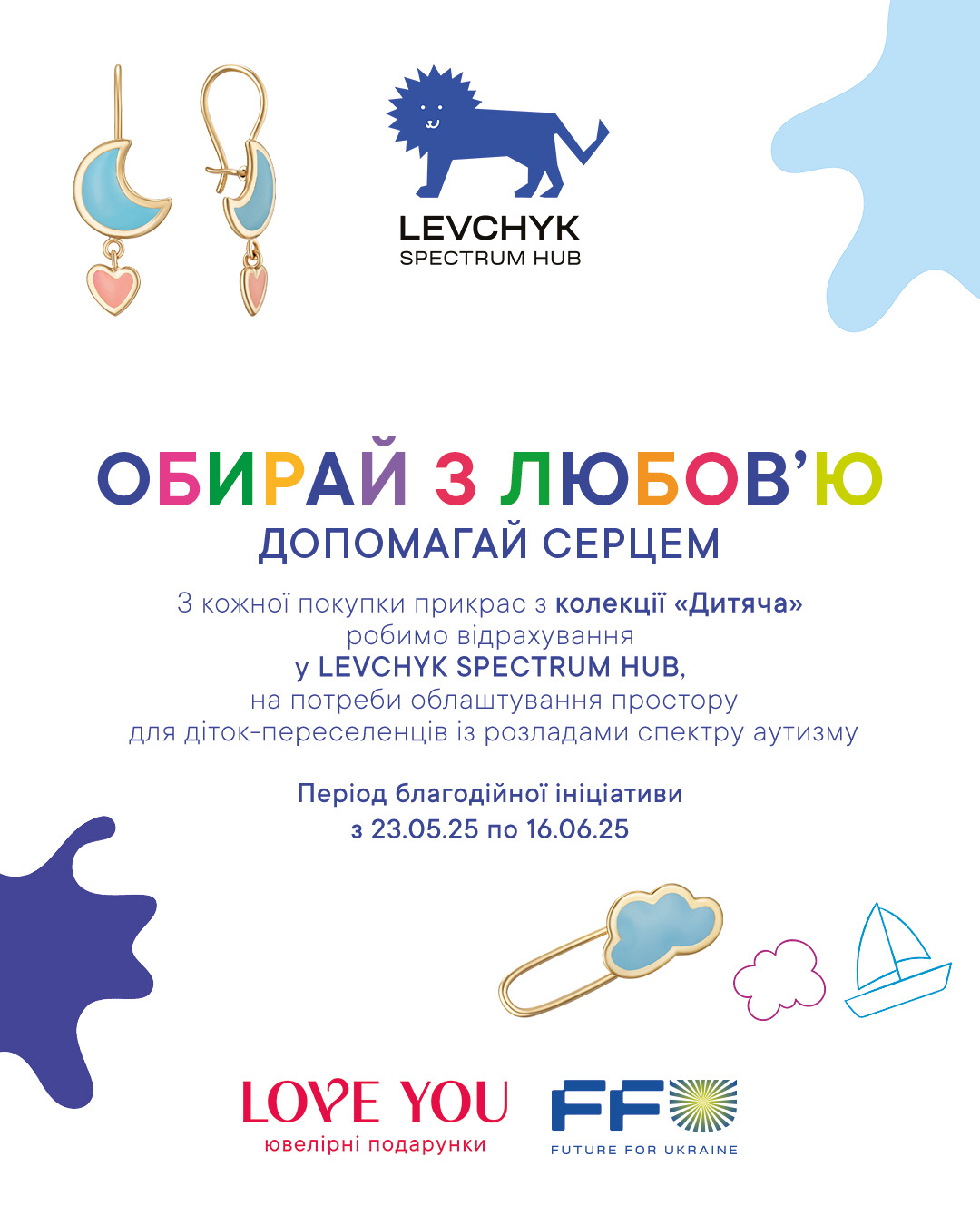 Український бренд ювелірних подарунків LOVE YOU також реалізує благодійну ініціативу на підтримку LEVCHYK SPECTRUM HUB.