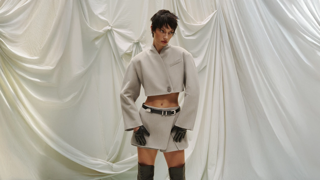 Бренд CHER'17 у своєму дропі New Form переосмислює класичний одяг. Стримані ділові речі сірого кольору отримали нову форму — укороченого жакета, корсету на бретелях і мінішортів. Заразом брючний костюм традиційного силуету набув ніжного забарвлення — пастельно-рожевого.