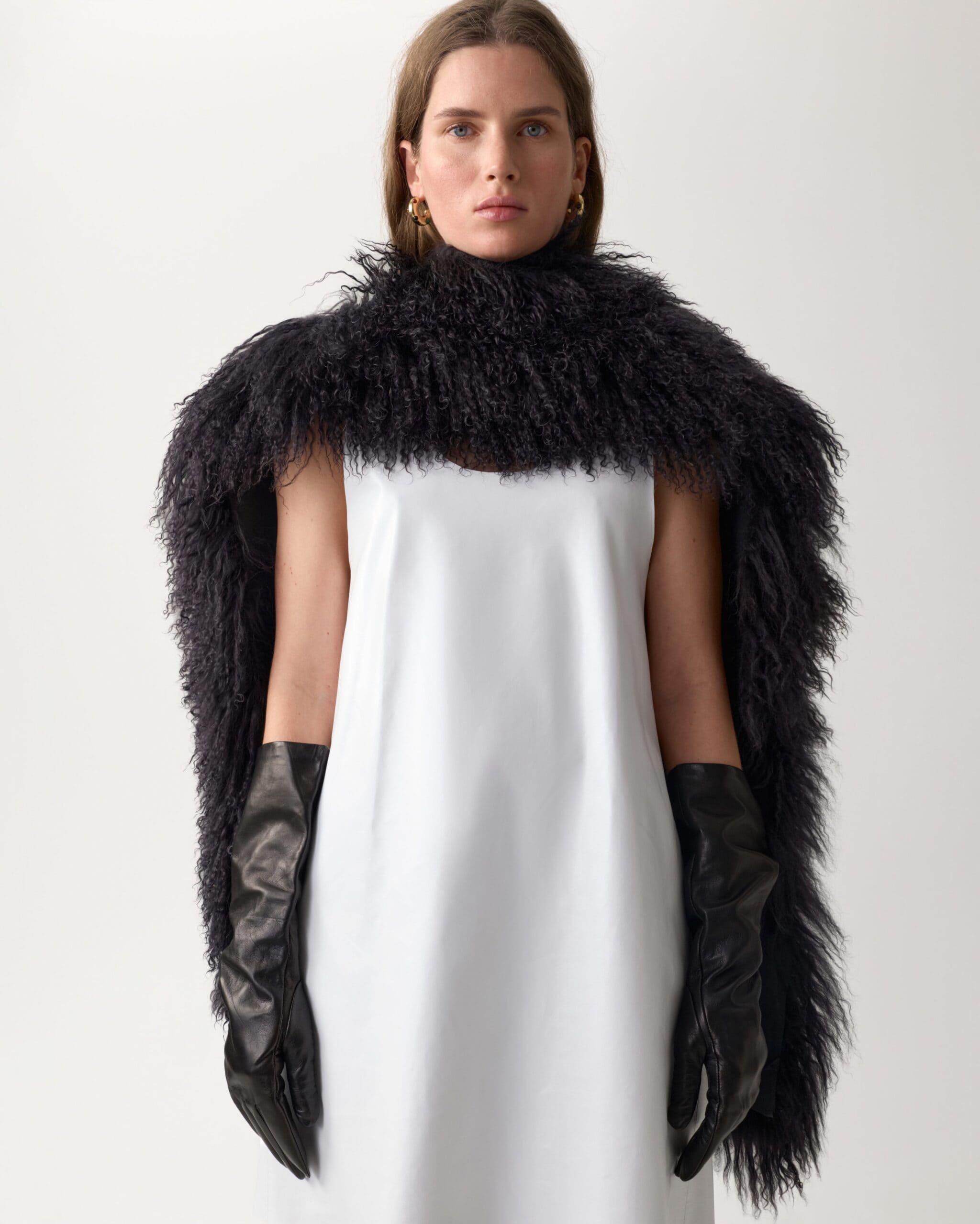 Завершують колекцію аксесуари — шарф із хутра лами, шкіряні рукавички й сумка з візерунком "під крокодила".