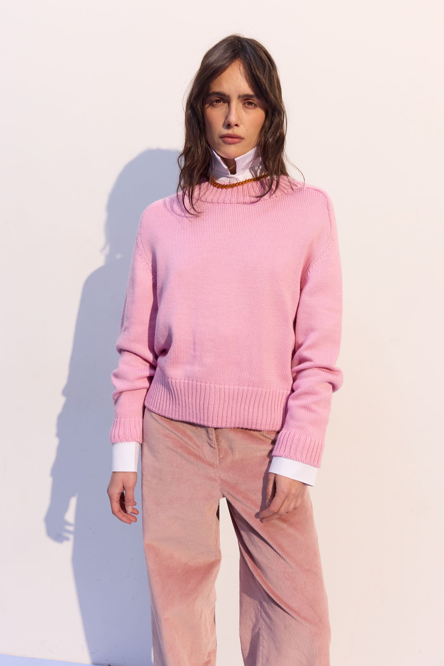 До дропу увійшли затишні мінімалістичні джемпери й водолазки, светр із високою горловиною з вовни ягняти та вельветові штани вільного крою. Крім того, для романтичних образів бренд представив максіспідницю в горошок і сатиновий топ із мереживом, а також моделі в ніжних рожевому та лимонному кольорах.