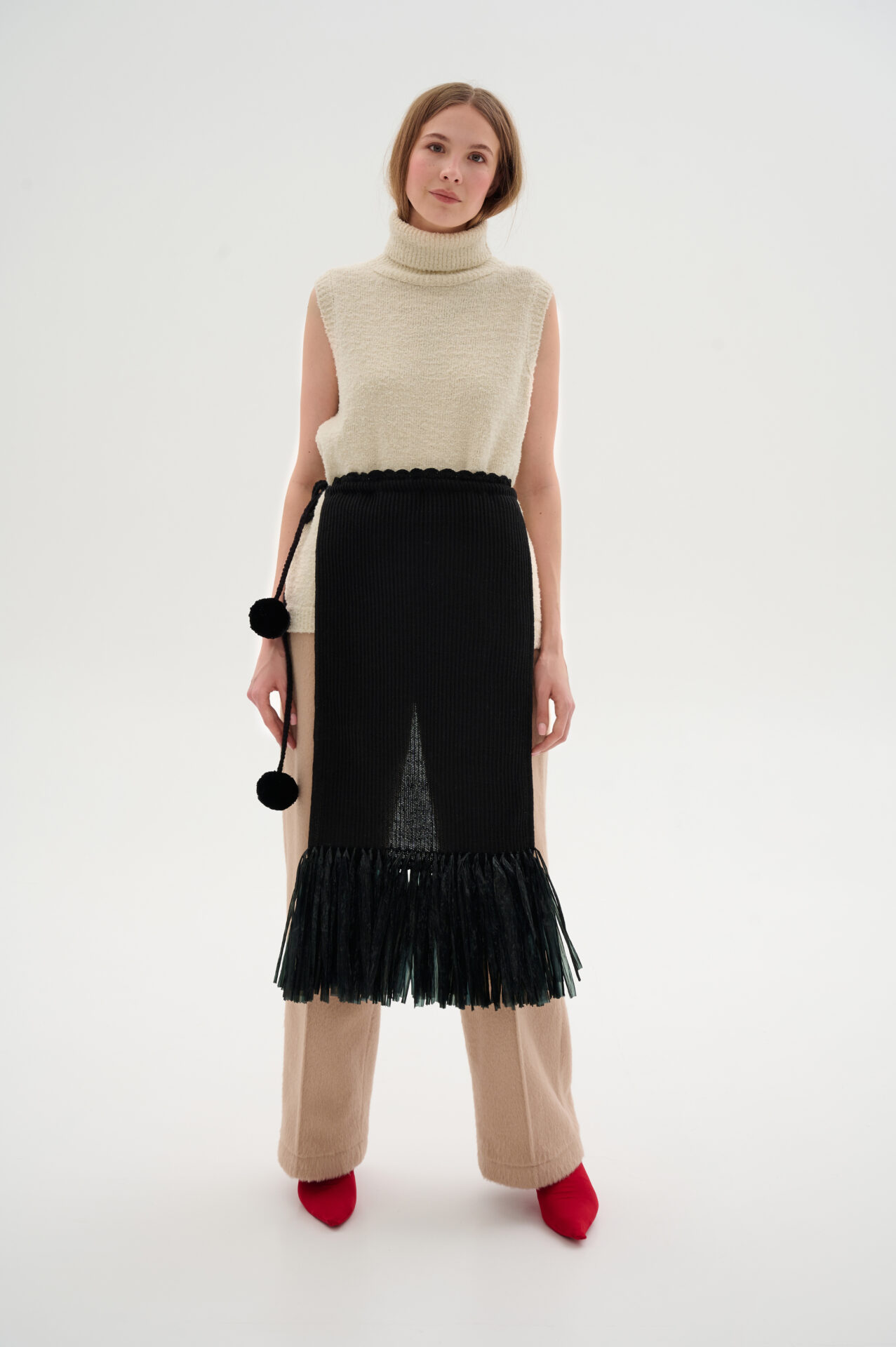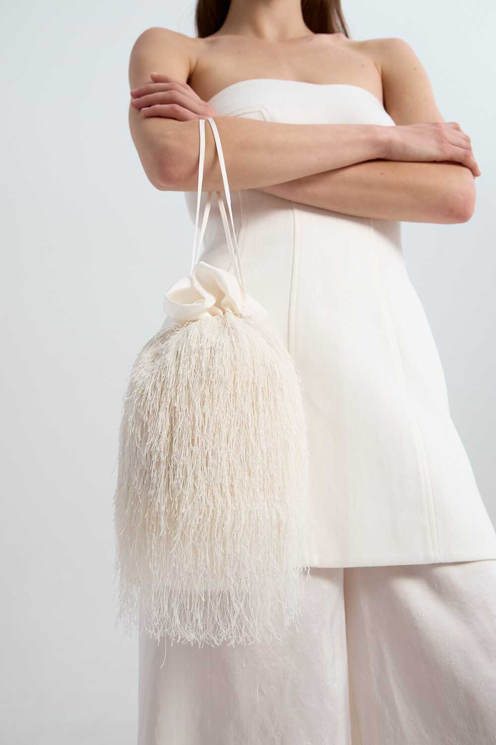 Передусім тренд на рухливі елементи в образі, як-от торочки й китиці, — це про грайливість і можливість додати базовому чи класичному луку характеру завдяки аксесуарам. Серед позицій українських брендів із таким декором — сумки ALEXANDER VANAVI та L'eskizzo, хустка й передник W8less і "Шипелик", а також сорочка OMELIA.