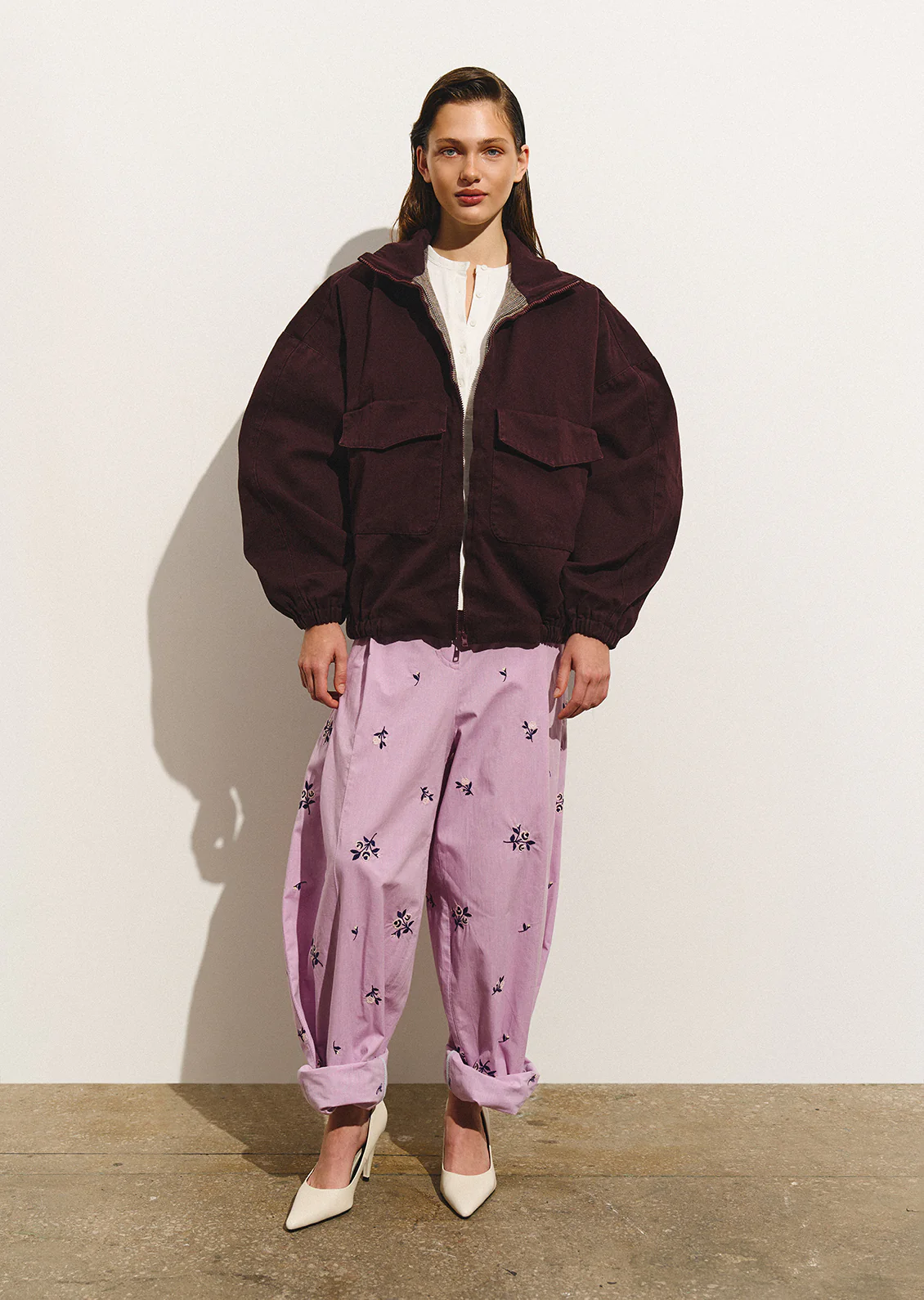 Їх можна поєднати з мінімалістичним верхом, зокрема вільного чи оверсайз-силуету, для створення стильного контрасту: з базовими чорними й білими футболками, піджаками, светрами або сорочками.