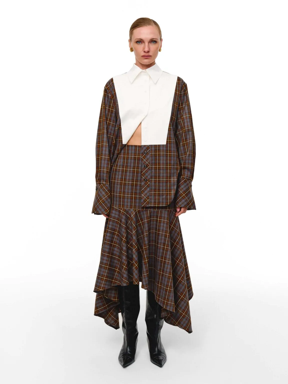 • Блуза PODYH із декоративним довгим коміром, натхненним дерев'яним різьбленим елементом архітектури. Ціна зі знижкою: 4560 грн