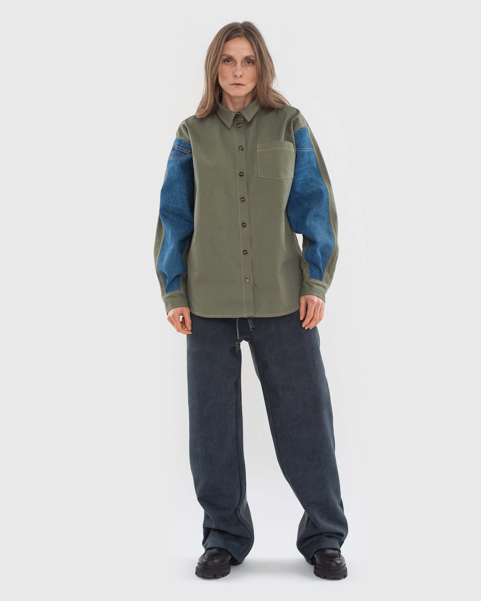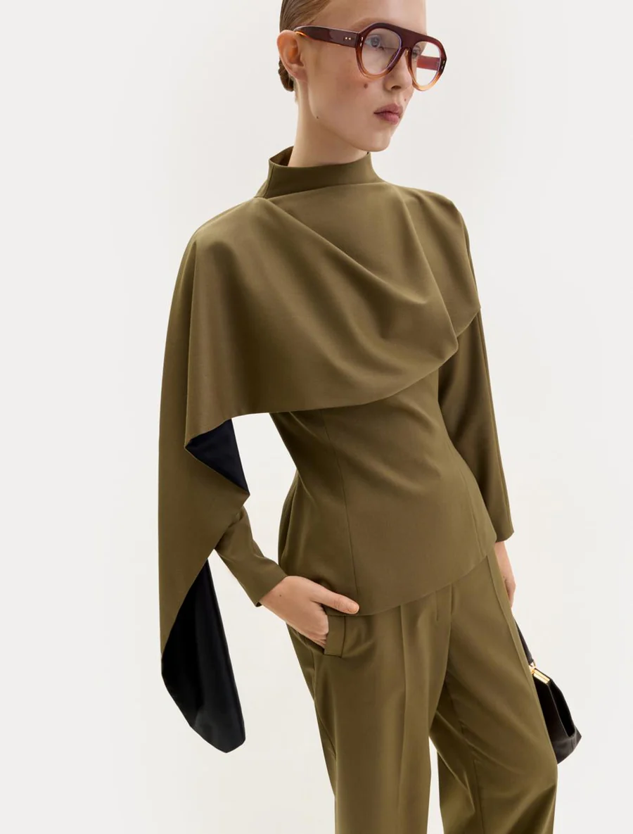 Оливковий вирізняється природністю та затишком — саме ці риси роблять його ідеальним для осінньо-зимового сезону. Він гармонійно поєднується з нейтральними відтінками й ефектно контрастує з більш виразними — бордовим, коричневим, рожевим і блакитним. Знакові речі у цій палітрі представлені в KSENIASCHNAIDER, ELENAREVA, Katimo, deep, Kachorovska та VERBENA.