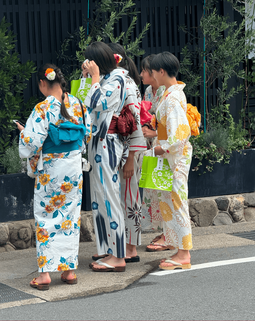Японці зберігають глибокий зв'язок зі своїм минулим через одяг. Традиційний костюм складається з кімоно — довгого халата з широкими рукавами, який підв'язують обі, широким поясом, що часто перетворюється на головний акцент образу. У теплу пору року носять юкату — легшу бавовняну версію без підкладки, популярну на літніх фестивалях. Образ доповнюють ґета — дерев'яні сандалі на платформі, або дзорі — пласке взуття, яке носять із білими шкарпетками табі.