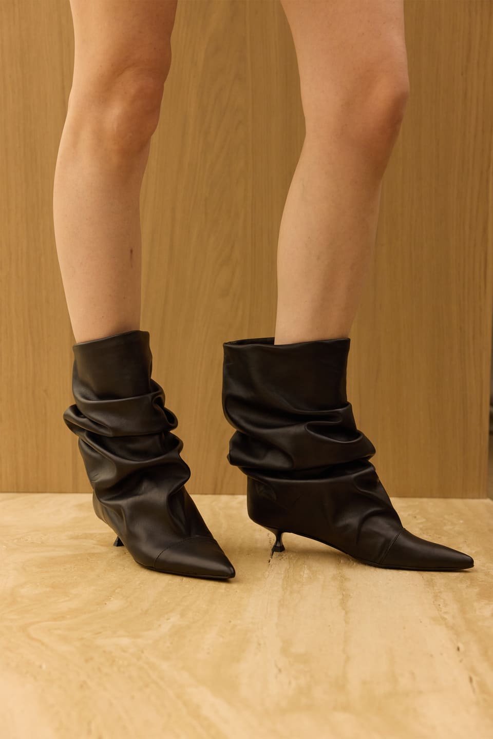 На тлі повернення стилю бохо в моду взуття з м'якою текстурою, що утворює ніжні каскадні складки, теж впевнено очолило рейтинг трендів. Українські бренди вже представили своє бачення таких моделей: Estro — затишні ковбойки, Emmelie Delage — елегантні ботфорти, а BAZHANE — грайливі ботильйони.