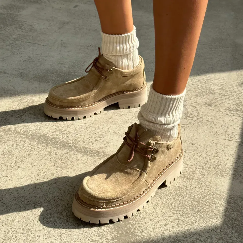 Протягом останніх сезонів замша утримує лідерські позиції серед трендів, асоціюючись із теплом, елегантністю та м'якістю. Взуття з цього матеріалу не є винятком та залишається одним із найактуальніших цієї осені та зими. В асортименті українських брендів можна знайти як стильні утилітарні пари від Ikos, Artell та te.shoes, так і витончені рішення від HVOYA та Kachorovska.