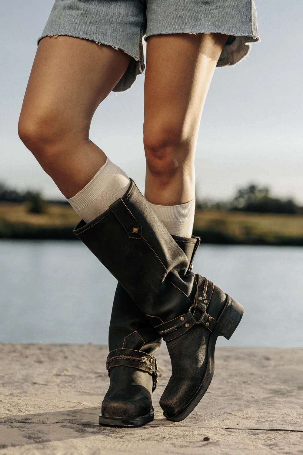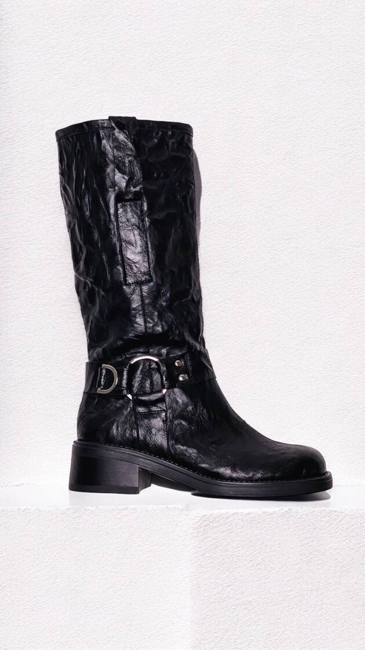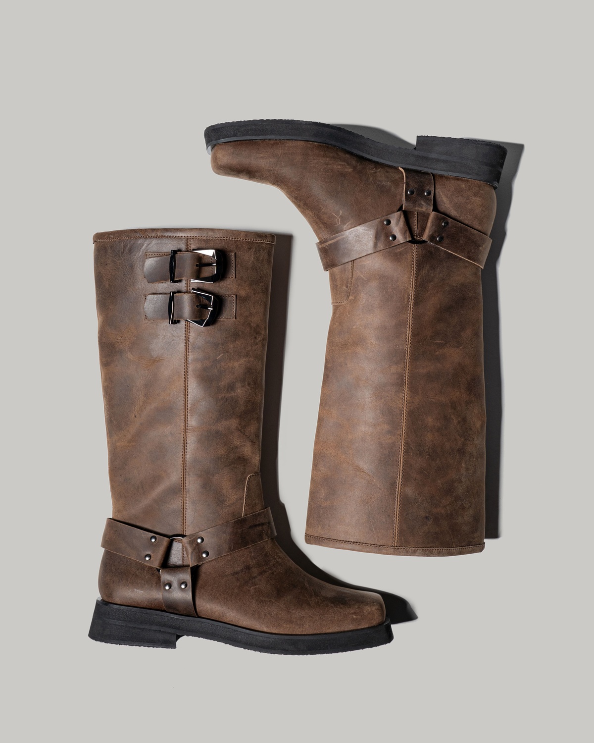 З декоративними ремінцями, широкою халявою та вінтажним дизайном — трендове взуття в байкерській естетиці приваблює своїм бунтарським характером. Водночас його гранжевий шарм стильно й легко збалансовується романтичними та базовими речами, як-от затишними светрами та одягом із мереживом. Таке взуття з авантюристським настроєм пропонують українські бренди "Хамелеон", COOSH і JECOME.