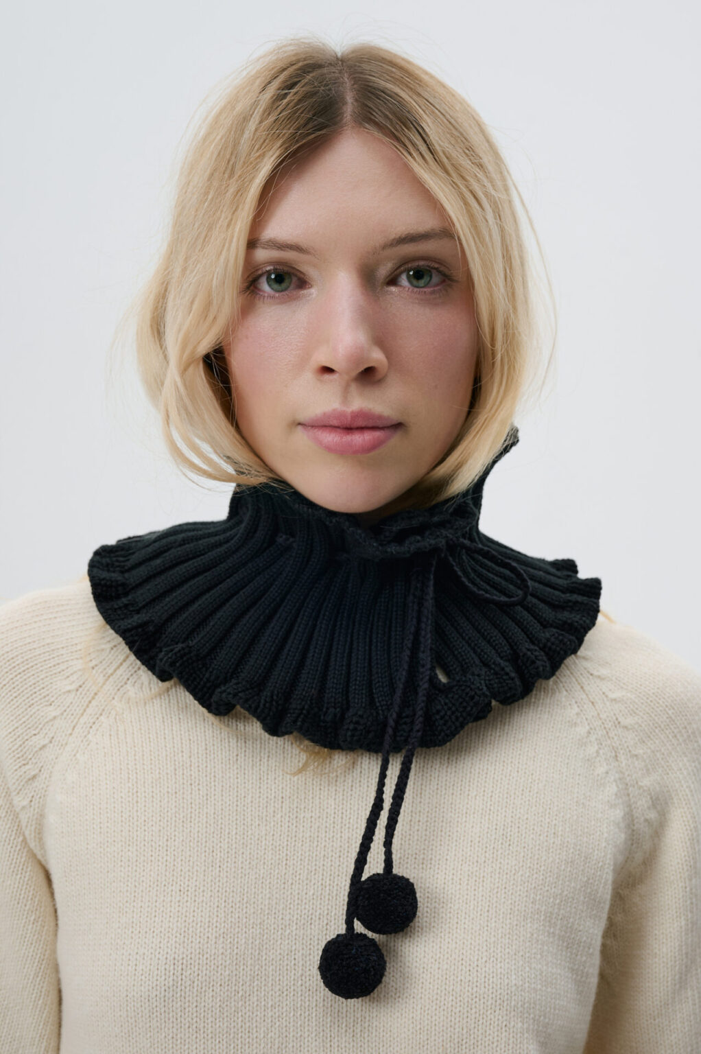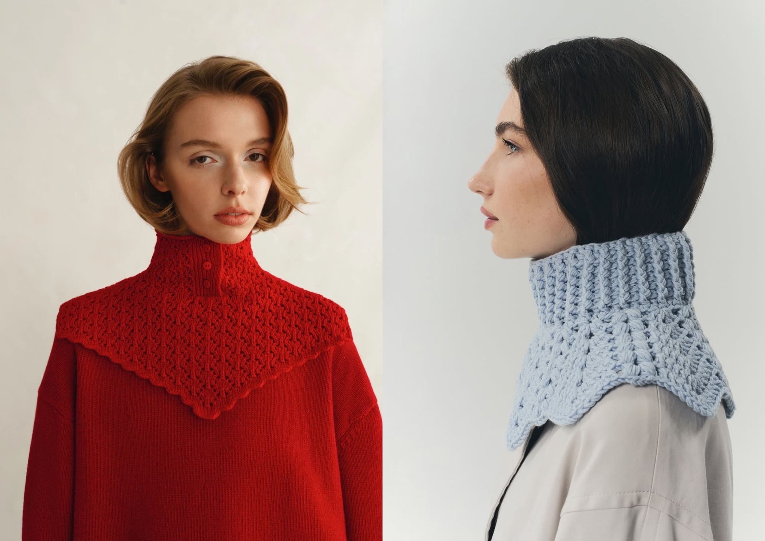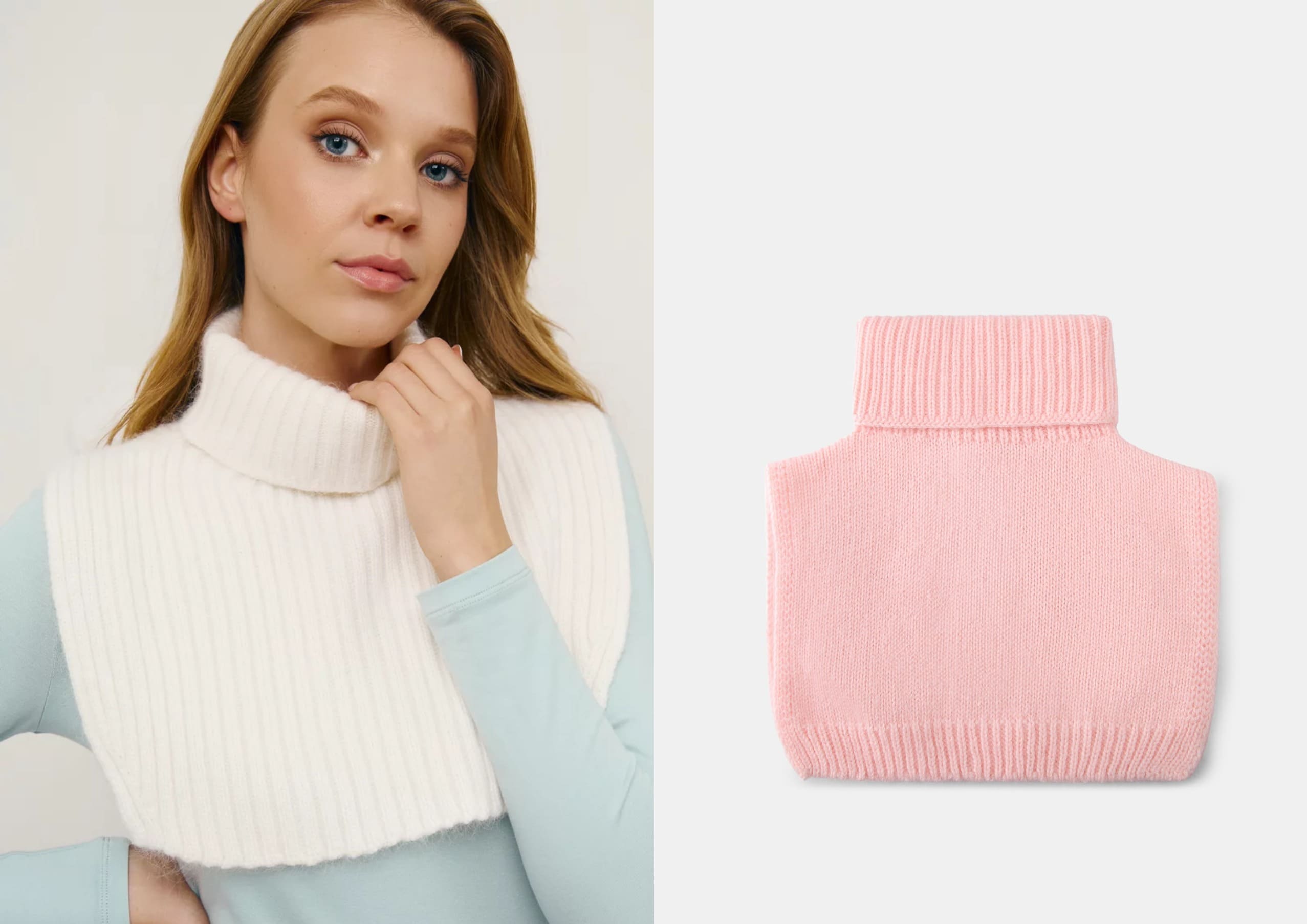 Зі знімними комірами та бафами, що огортають лише шию, а також із нагрудними виробами — манишками — ти зможеш не лише зігрітися надворі, а й цікаво доповнити образ, перебуваючи всередині потрібної локації. Шукай манишки у брендів BASIX, GEPUR, O.TAJE та in.woven, баф — у PAPAYA та знімні коміри — в T.Mosca й "Шипелик".