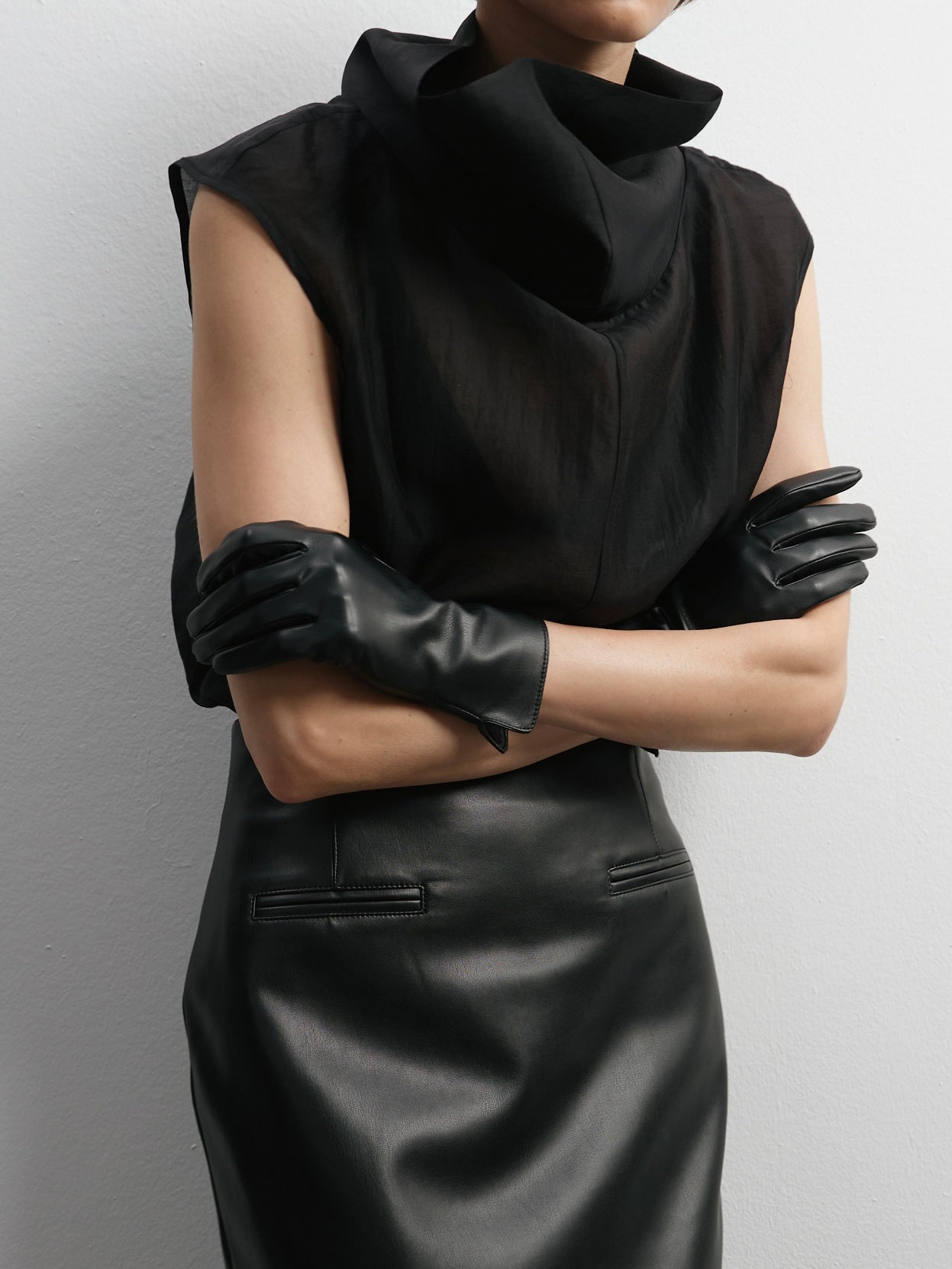 - Подовжені шкіряні рукавиці Friends of Fashion (зліва). Ціна: 3990 грн