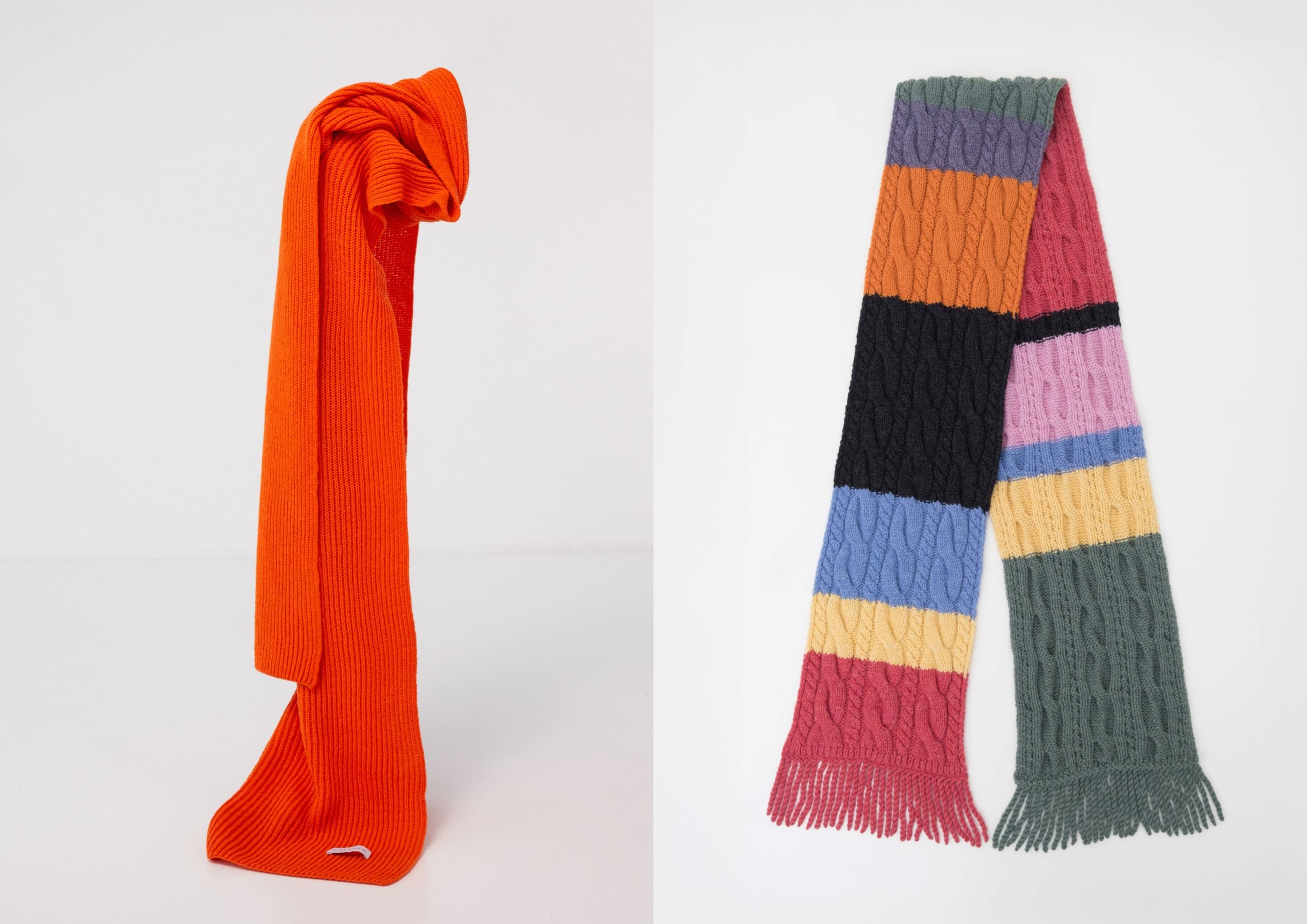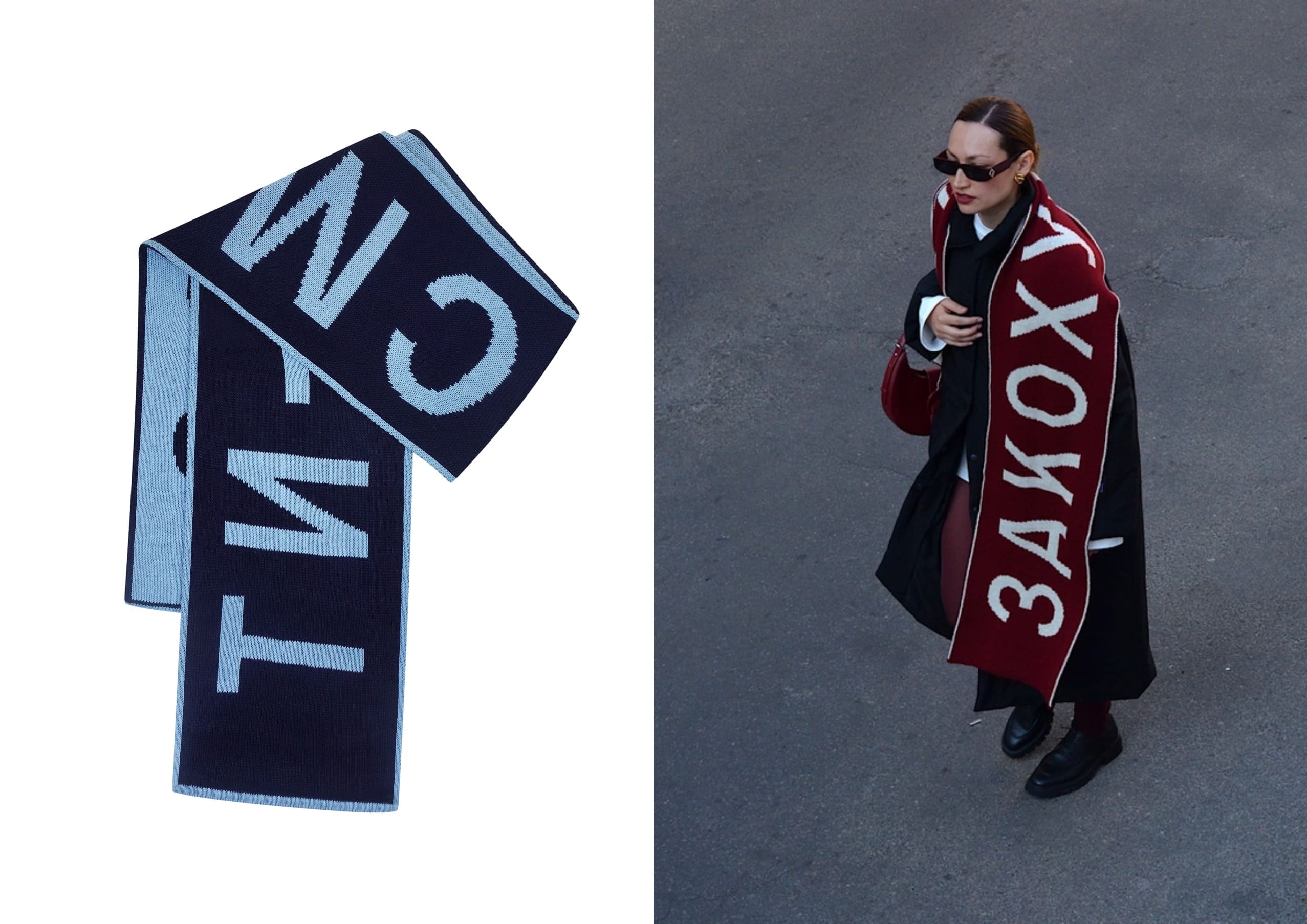 Бренд byMe пропонує два шарфи з мрійливими написами: "Ти — космос" (створений у колаборації з однойменним фільмом) та "закохувати". В Edere Editions і GUNIA Project ти знайдеш моделі з невеликими помпонами, а в O.TAJE, Fiore Bianco, Feb та Ruslan Baginskiy — у зігрівальних кольорах.