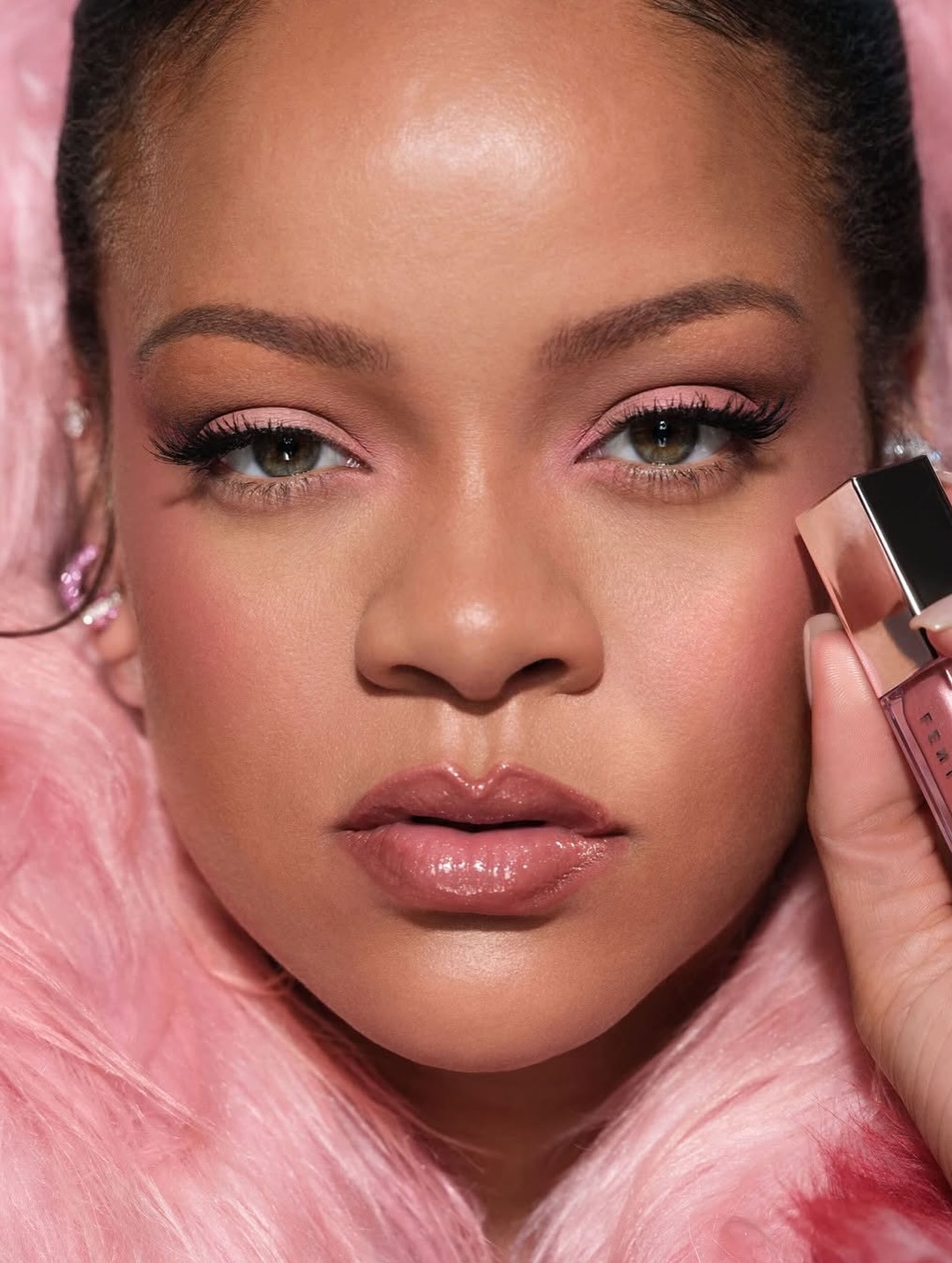 Співачка Ріанна, яка вже неодноразово позувала у виробах дизайнера Руслана Багінського, знову обрала його головний убір. У новому відео для власного б'юті-бренду Fenty Beauty вона приміряла пухнасту рожеву шапку-капюшон від Ruslan Baginskiy.