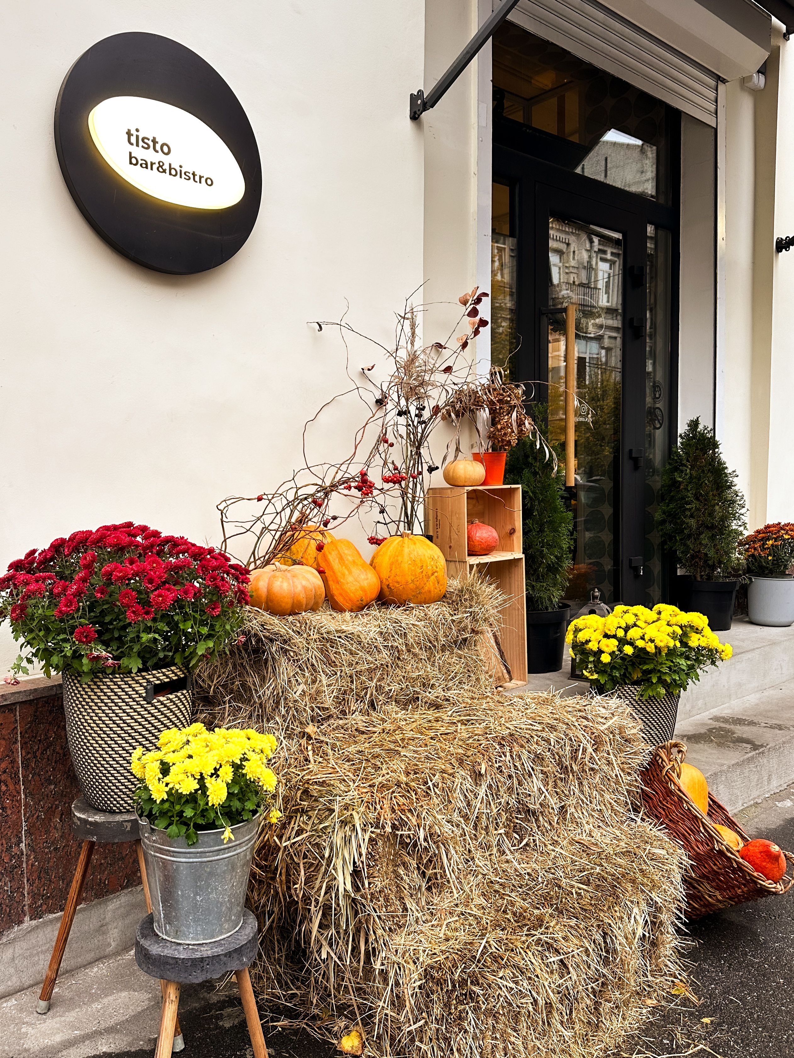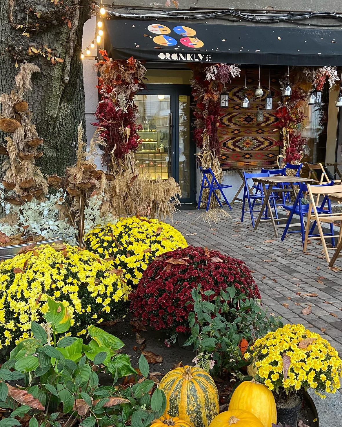 Листопад — останній місяць осені, тож це чудова нагода ловити осінні вайби золотої пори різнобарвних хризантем, гарбузів та, звісно, гарбузового лате. Ми продовжуємо показувати, як столичні заклади оздобили свої подвір'я цього сезону.