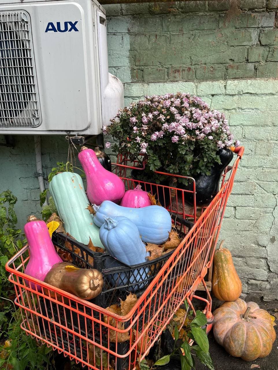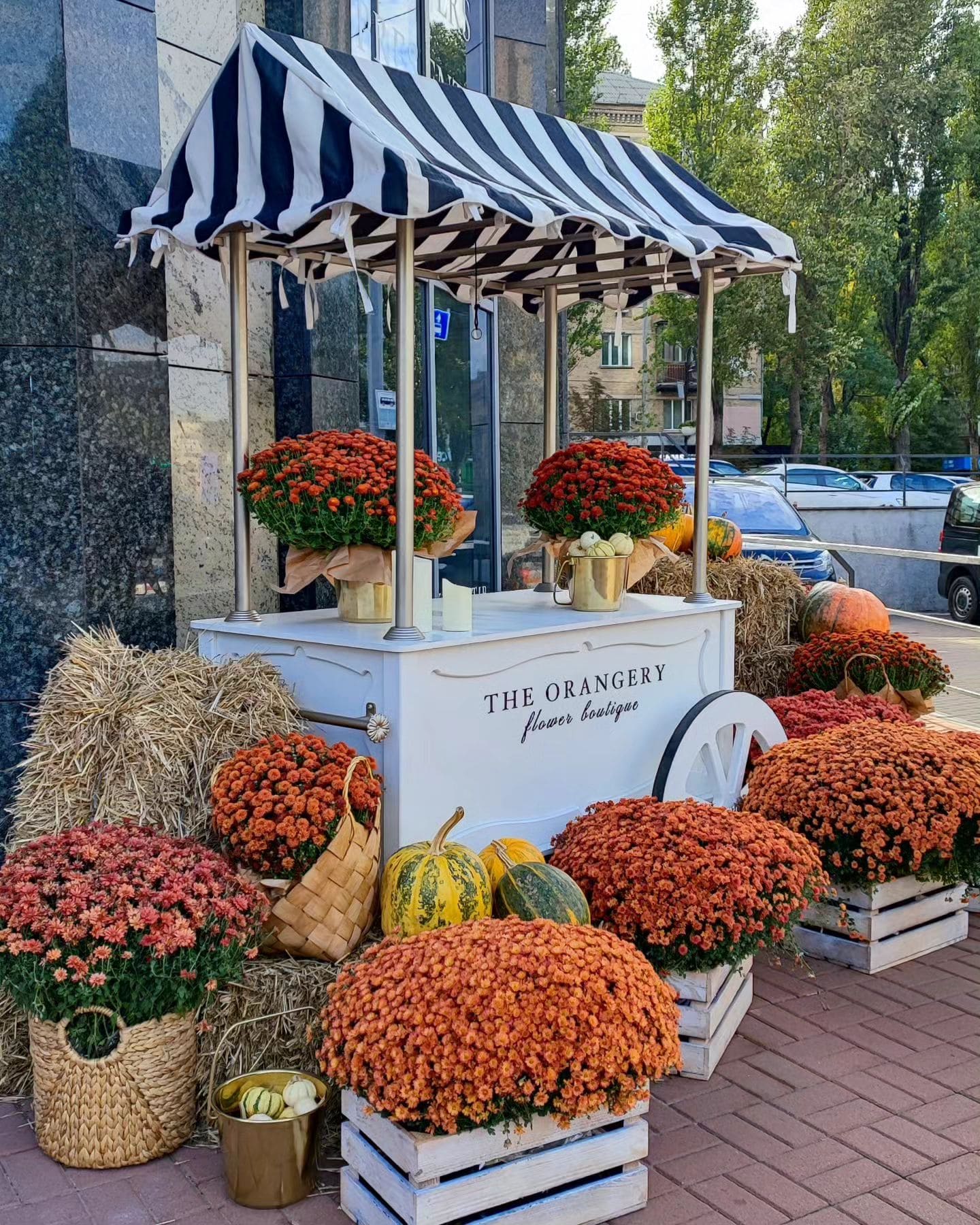 Неподалік метро "Кловська" (БЦ "Парус") розташований квітковий бутик, який теж вирішив порадувати невеличкою, але дуже стильною осінньою фотозоною з хризантемами та гарбузиками.