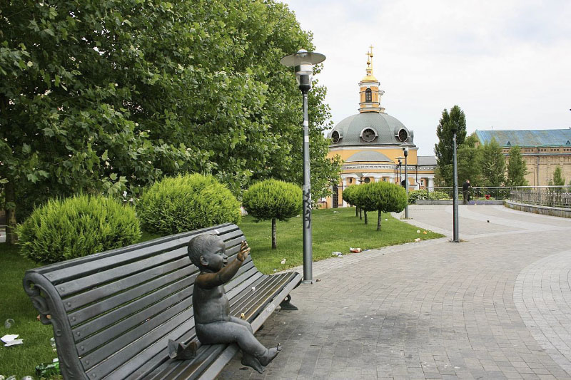 Якщо спускатися до Поштової площі з Володимирської гірки чи з Європейської площі, на перший погляд, усе гаразд. Приміром, відкрита 2017 року скульптура малюків — символ дитинства засновників Києва — досі стоїть.
