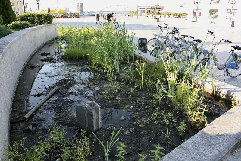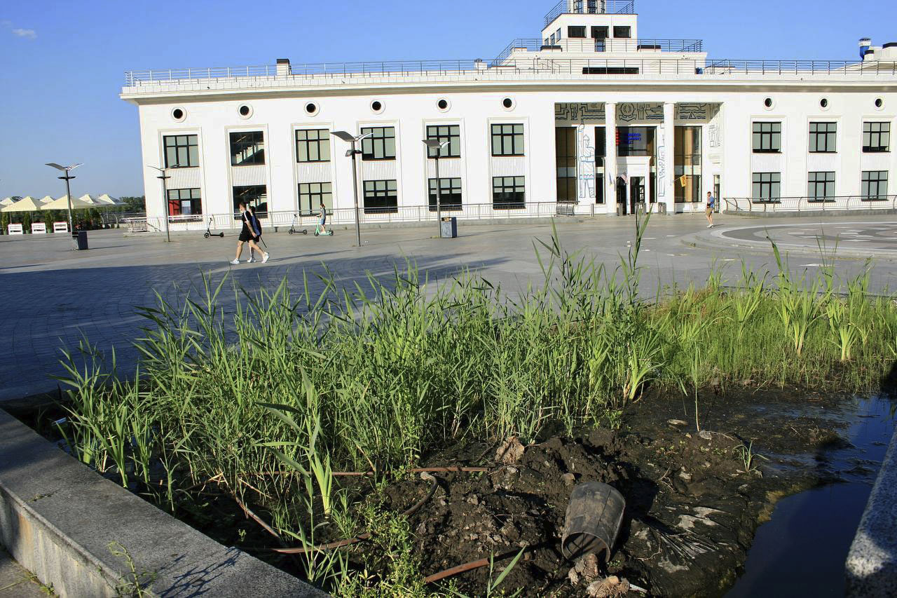 Позаяк інвестор ТРЦ умив руки, за водопостачання в недобудові ніхто не платить. Подейкують, через це закрили й фонтан. А через неякісну систему водовідводу на одній з небагатьох зелених ділянок утворилося болото.