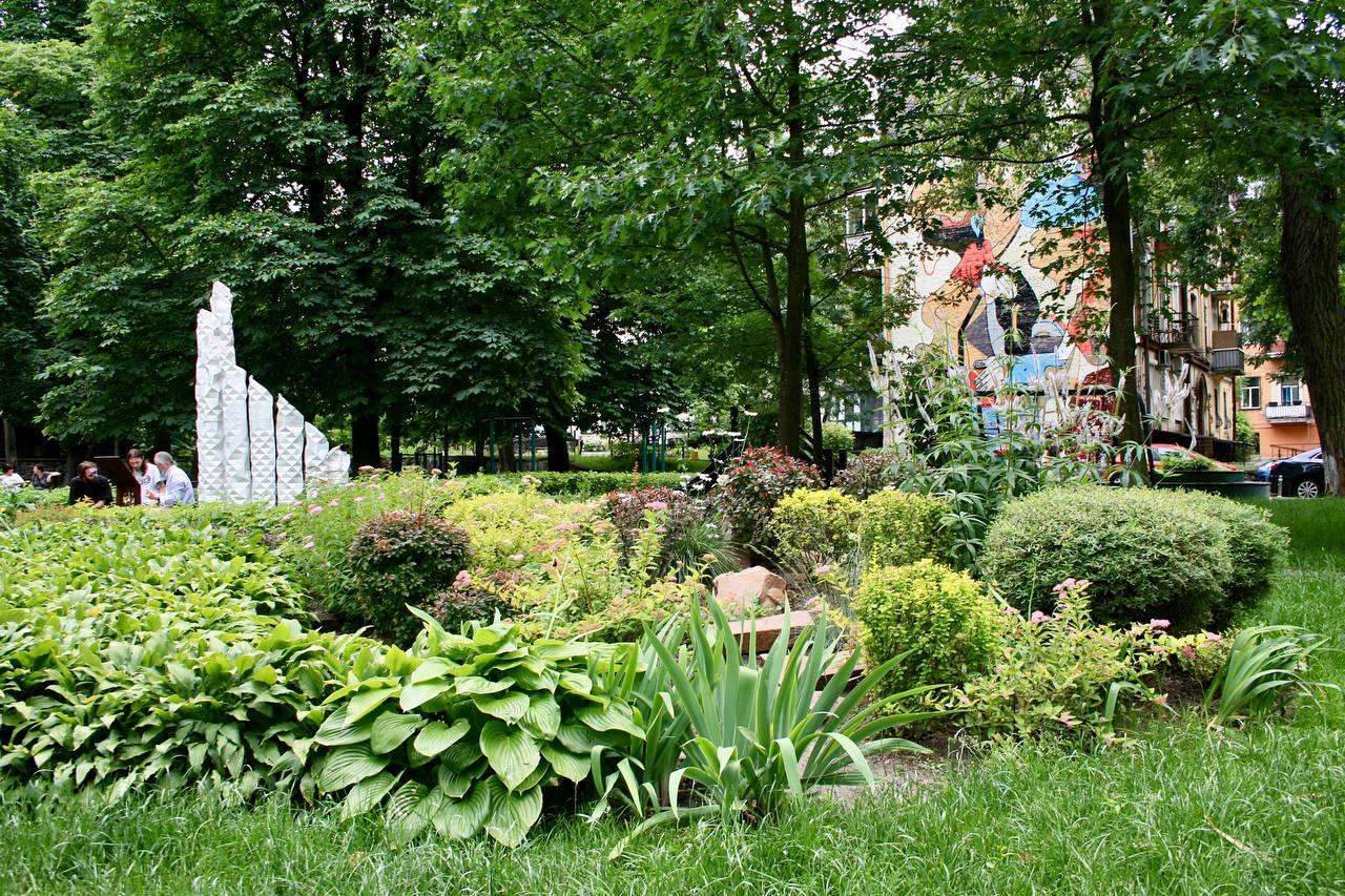 Цей мініпарк на перехресті вулиць Олеся Гончара й Великої Житомирської з'явився в центрі Києва завдяки активістам, які не дали звести тут, в історичному центрі столиці, чергову новобудову. Та попри те, що скверу вже понад 10 років, знають про нього не всі кияни. Пройдемось?!