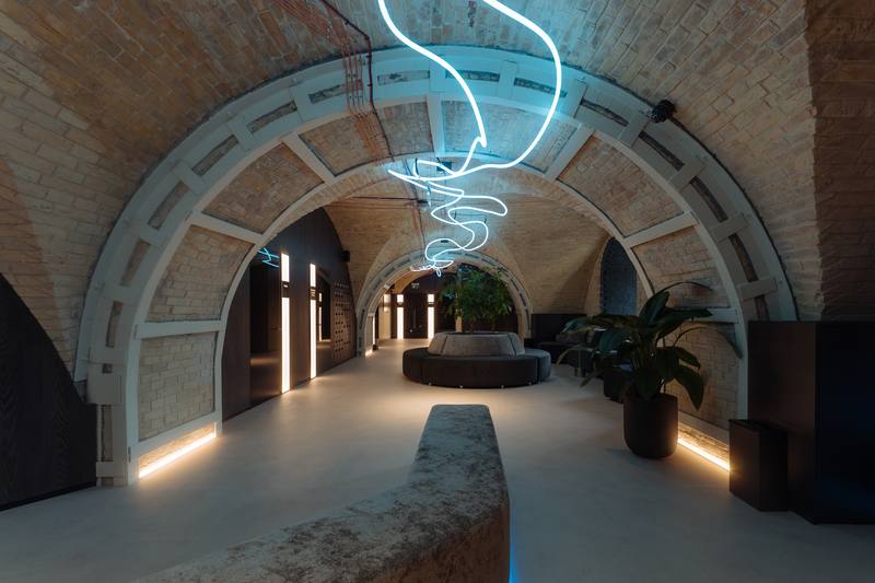 В інтер'єрі гармонійно поєднані футуристичні елементи та природні матеріали — дерево, камінь, зелень, але вони також підкреслюють концепт закладу. У цій будівлі розміщено найсучасніше обладнання для чекапів та тренувань, при цьому все виконано з повагою до історичної спадщини Києва.