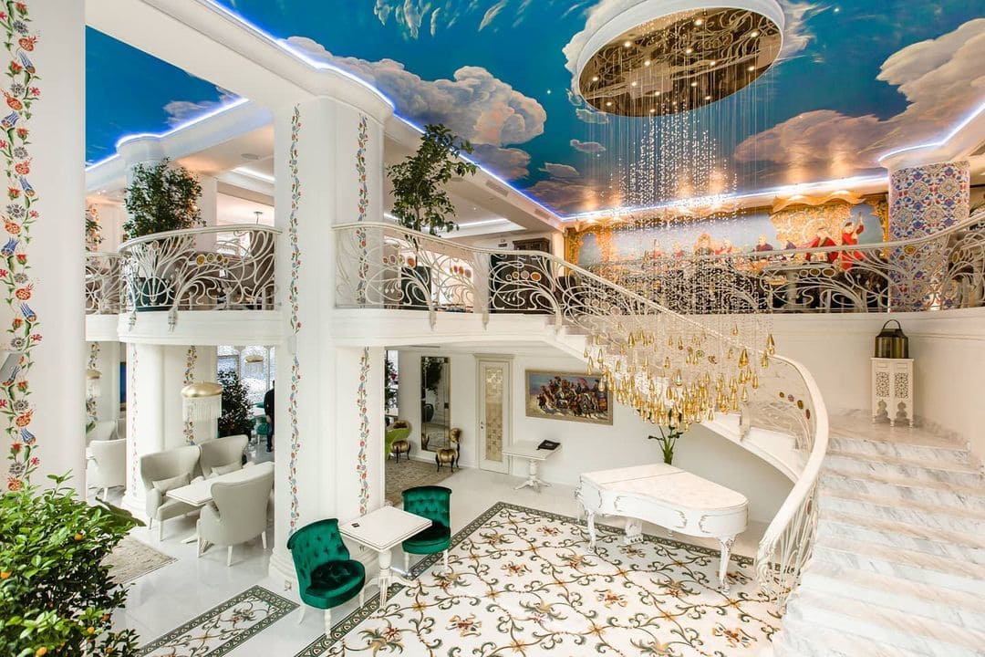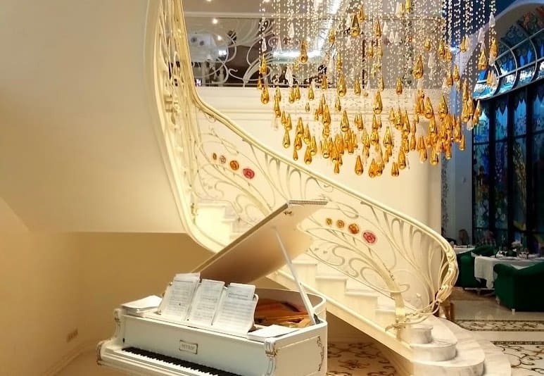 - романтичний — із рожевими трояндами та великими дзеркалами. Приміщення оформлене в стилі ренесансу.