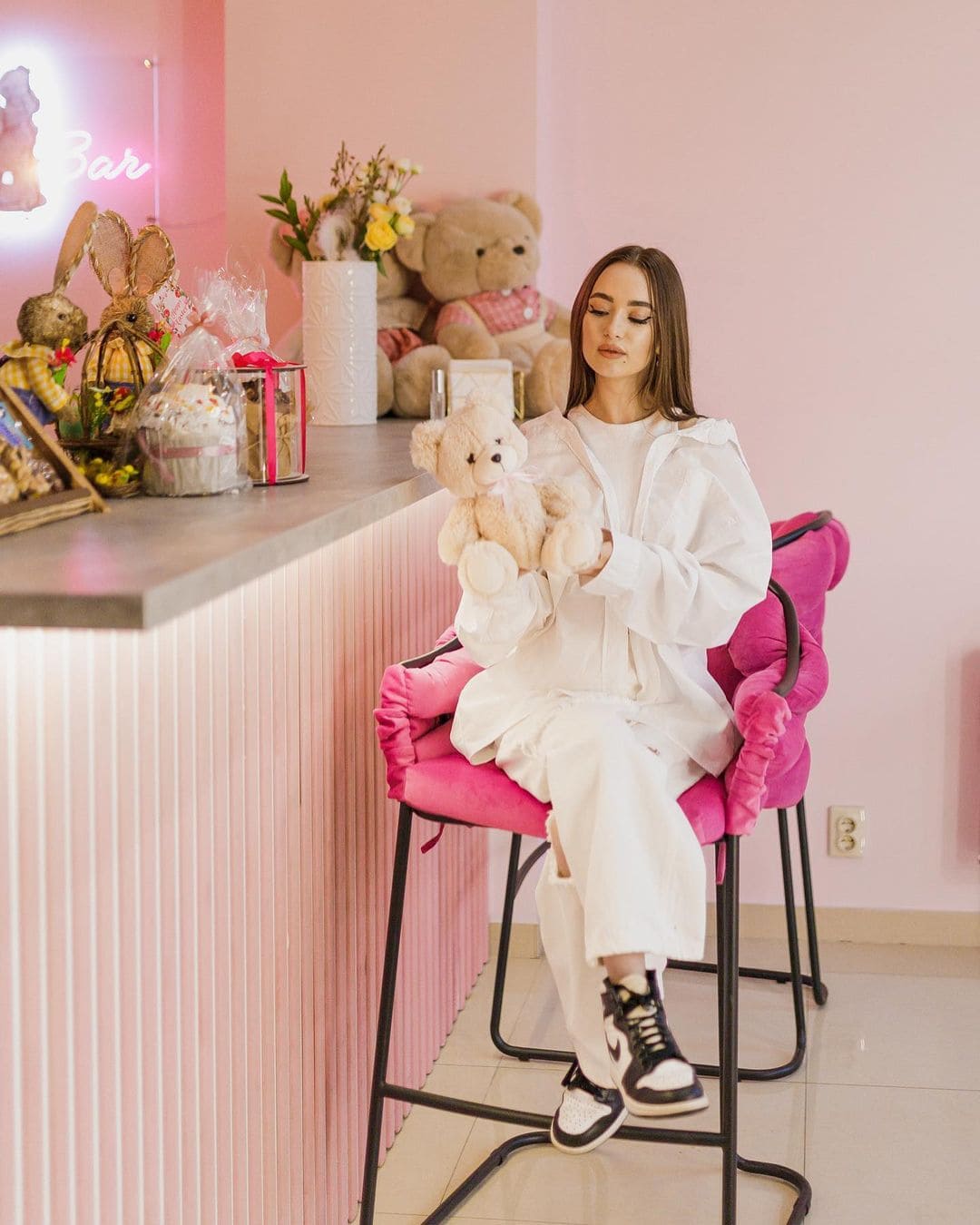 Справжній рай для поціновувачів плюшевих ведмедиків, адже їх тут ну дуууже багато: і всі вони різного розміру. Ба більше, навіть є ціла стіна із цих плюшевих іграшок. Заклад у рожевому стилі, і це стосується навіть кавомашини. А бабл-стільці біля стійки так і закликають до фотосесії. Дзеркало із професійною підсвіткою стане в пригоді для милого селфі із гігантським ведмежам.