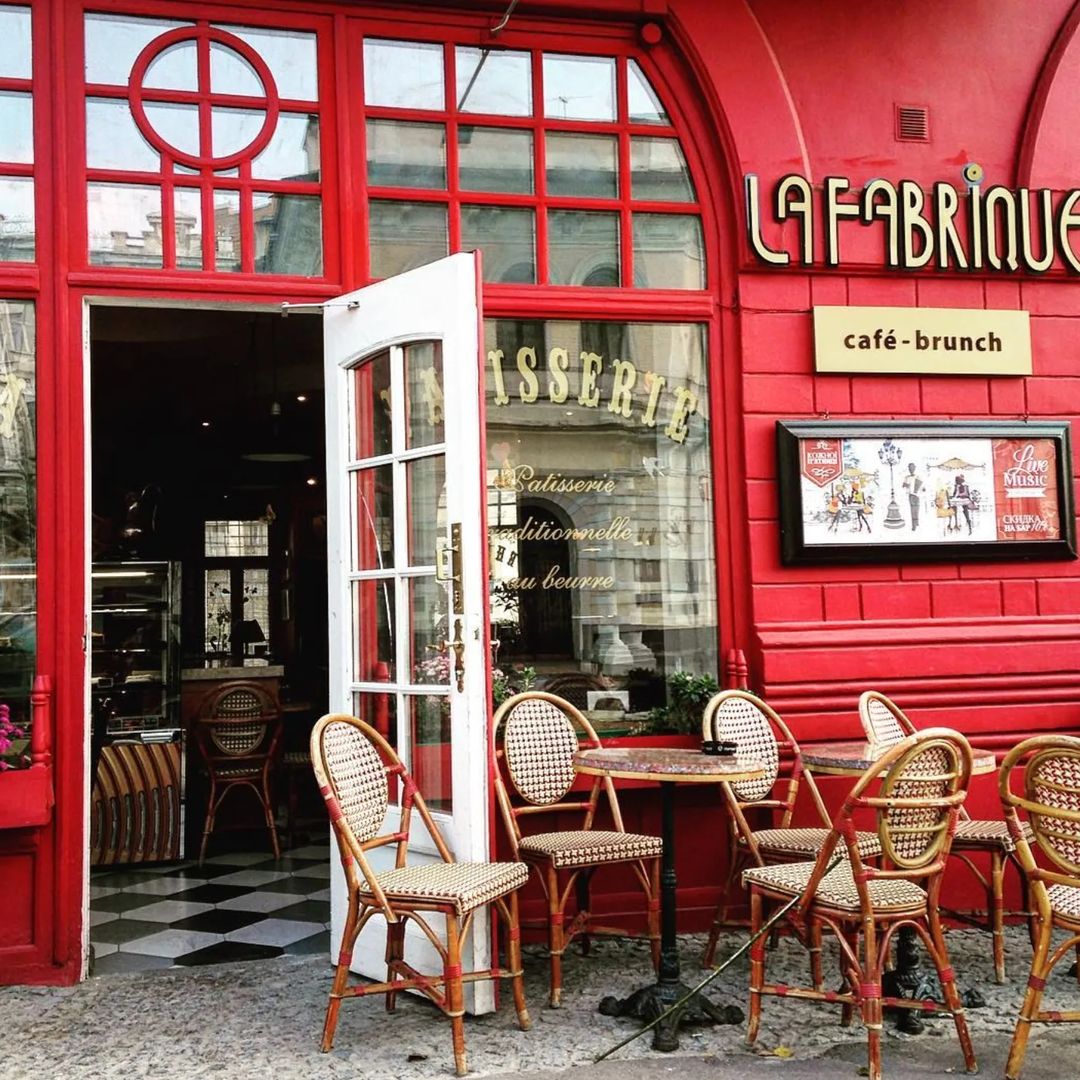 Шматочок Франції у самому серці Старого Києва. Фасад з панорамними вікнами, бруківка як на французьких вулицях, меблі, привезені з Франції, плетені стільчики, мармурові столики. Всередині зал прикрашений вазами та картинами з минулого століття, стіни та підвіконня, бра над столами, основу яких складають швейні машинки "Singer".