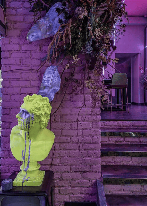 Експериментальний бар та party-ком'юніті. Заклад оформили великою кількістю неонових вивісок, цегляною кладкою, приглушеним освітленням та декором у вигляді відеомікросхем.