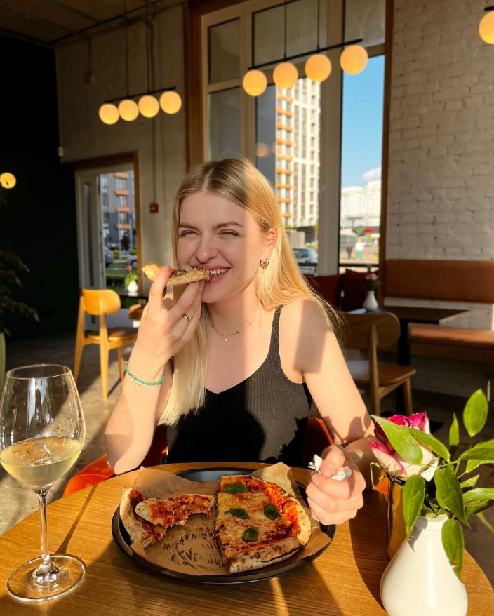 У меню — 17 видів піци на будь-який смак. Серед них — "Сицилія", "Хантер", "Пепероні", традиційна "Маргарита", "Діжонська", "Гавайська" та інші. Окрім піци також пропонують два десятки видів суші. А ще готують пасту, сніданки, салати й десерти. З напоїв доступні морс, пиво, соки, вода. У піцерії також діє пропозиція підвищених страв. Відтак ти можеш підвісити піцу для військових. Крім того, для ЗСУ, поліції й тероборони діє 25% знижка на меню.