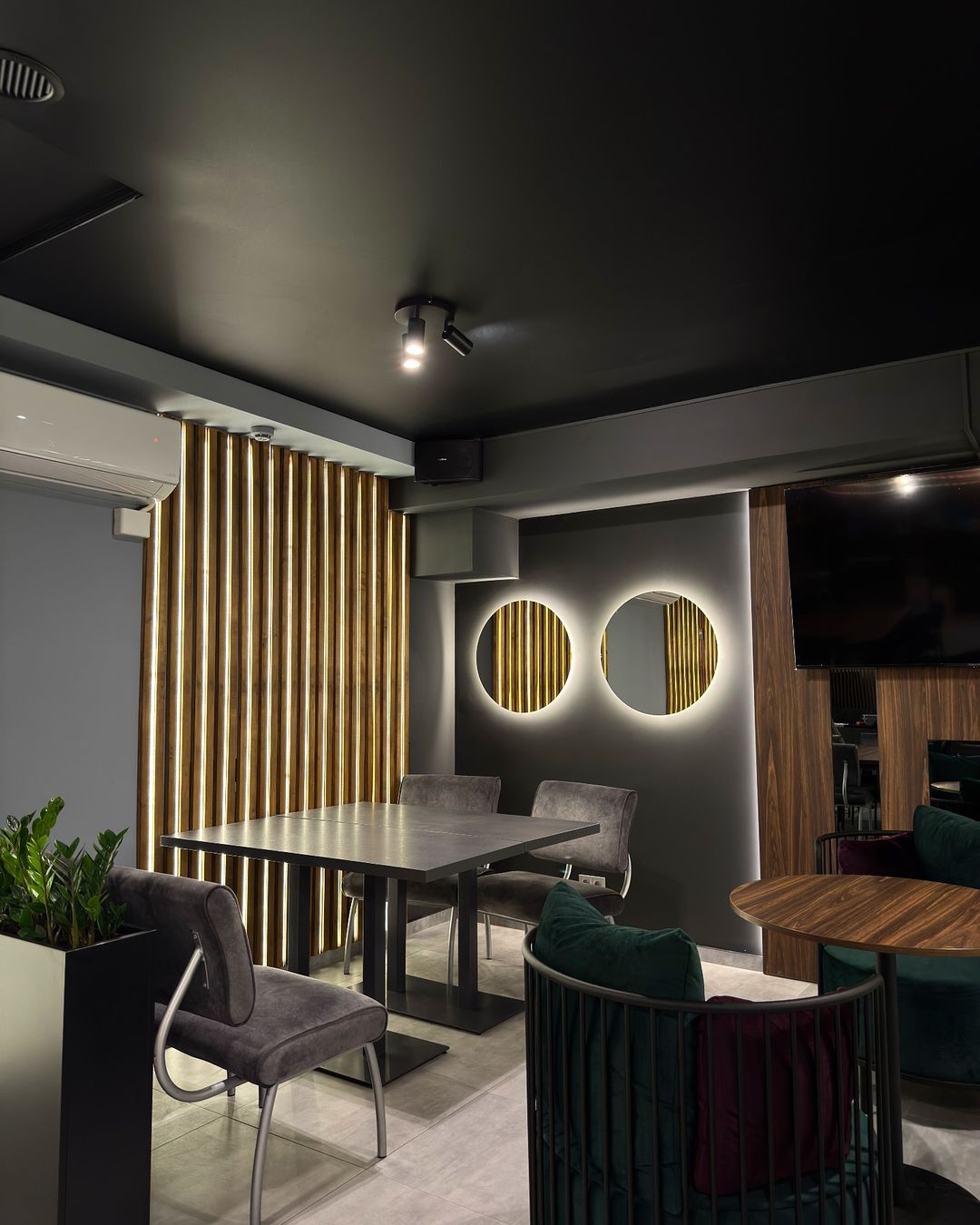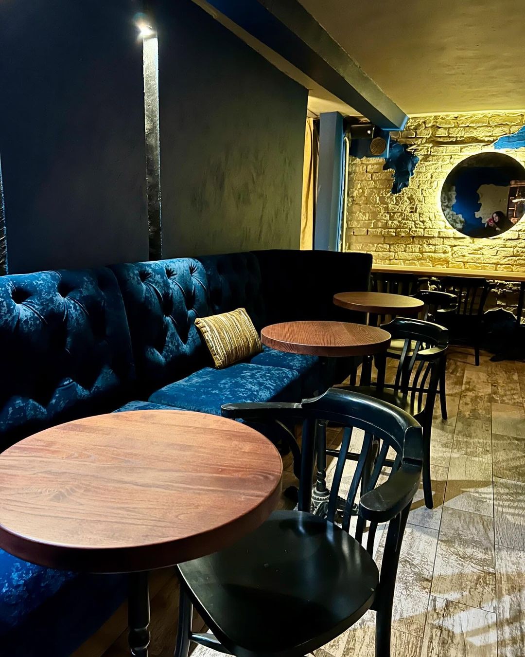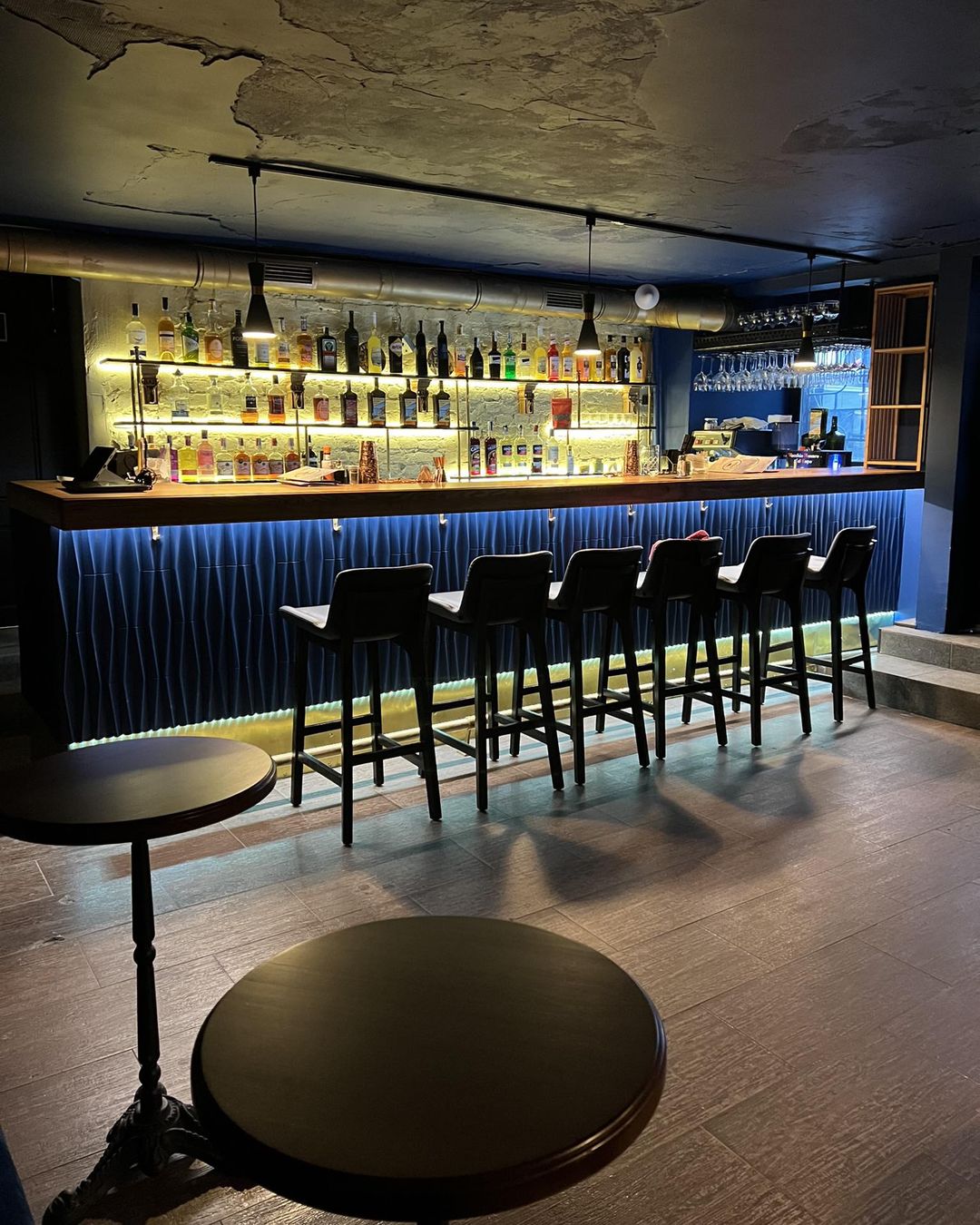 Атмосфера закладу — спокійна і невимушена, а інтер'єр виконаний у темних приглушених тонах, щоб гості могли спокійно насолоджуватися своїми коктейлями та компанією.