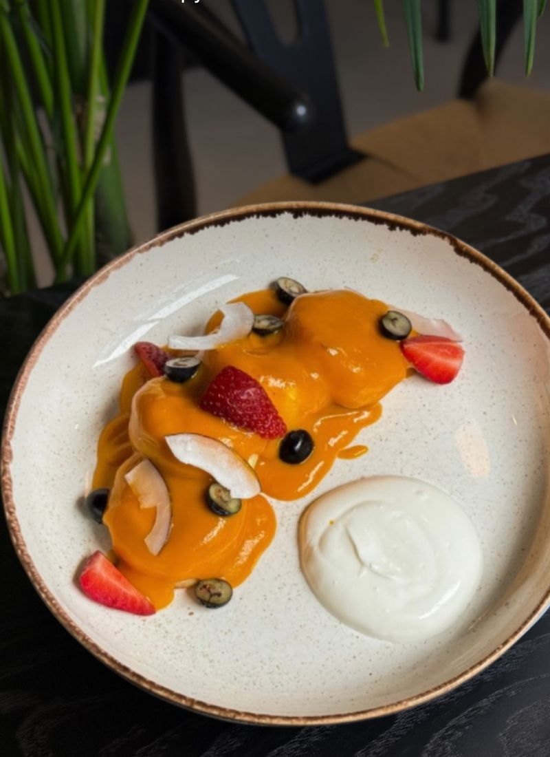 - Панкейки з ягідним соусом та морозивом — 250 грн;