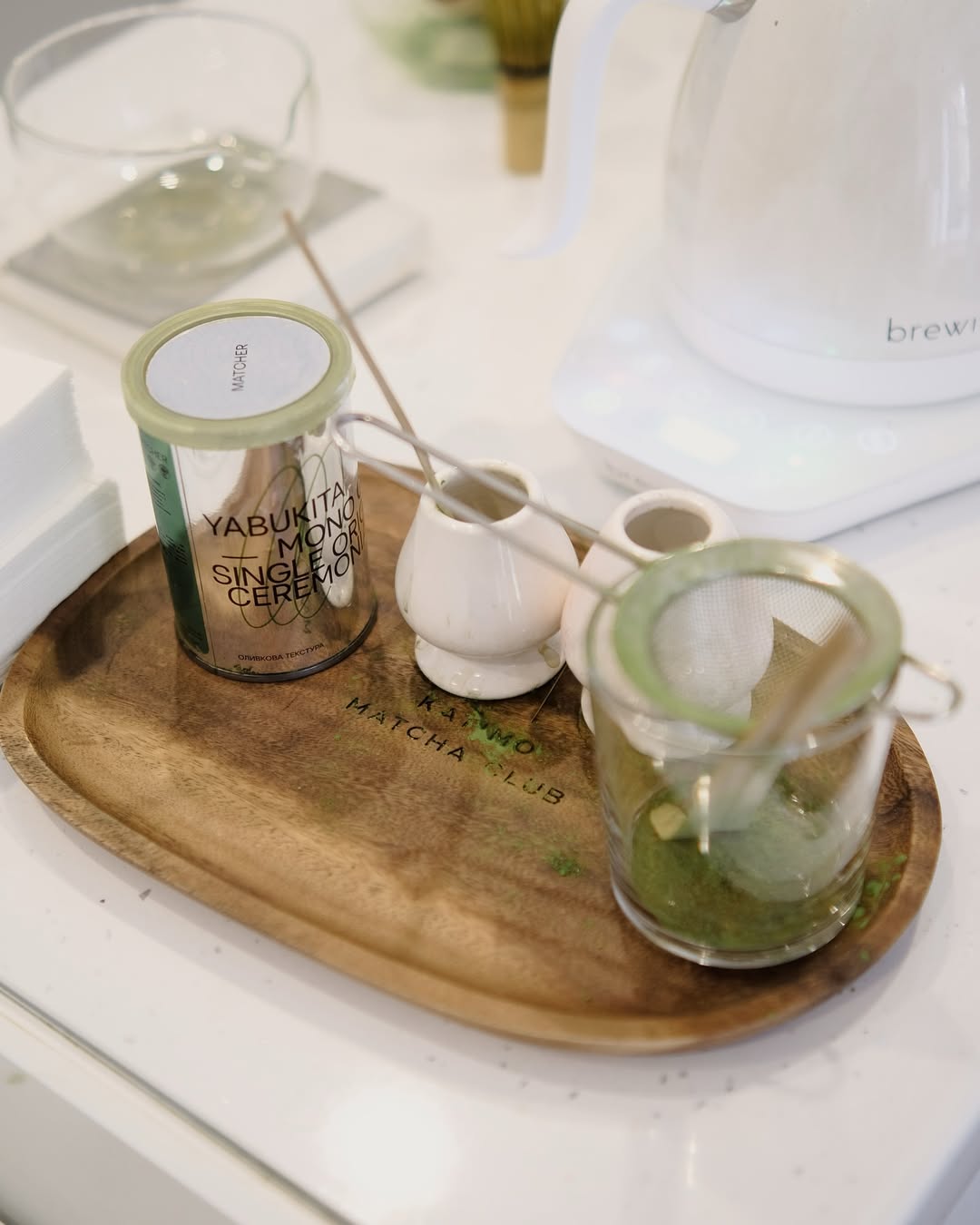Також тут є широкий вибір напоїв на основі матча: від холодного та гарячого матча лате до міксів з фруктовим фрешем чи сиропом. Ще подають лимонади та різноманітні листові чаї. Меню розробили шеф-кухарі Євген Мензелевський (Hram, Loggerhead, Zmist) та Оля Холоша ("Альпака").