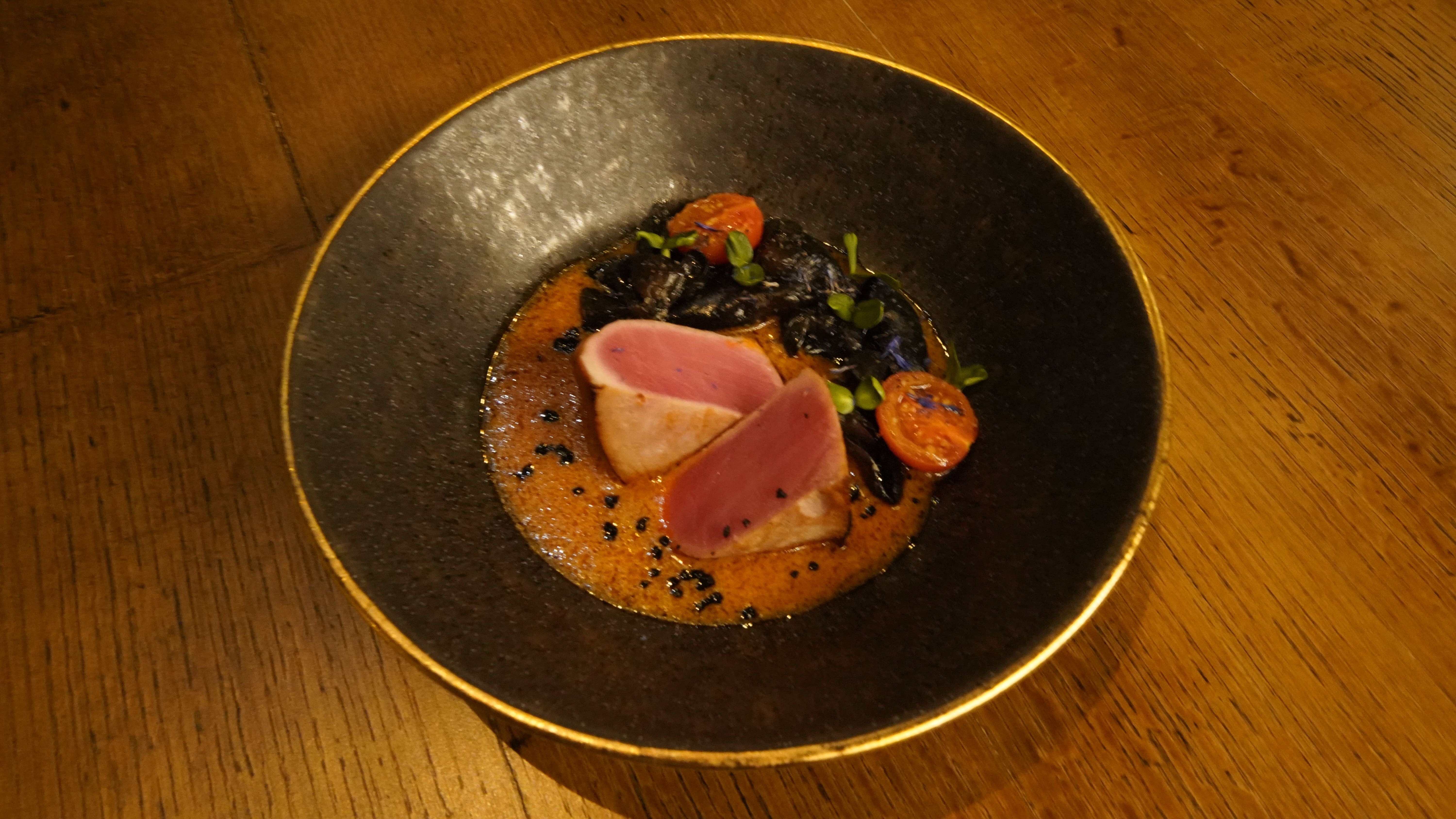 Фото: "ТиКиїв" Прихильникам вишуканого смаку варто спробувати стейк з тунця з карамелізованими чері та грибами муер. Стейк прожарюють до рівня Rare (найхолодніший варіант просмаження — Прим. Ред.), аби зберегти корисні властивості та передати смак рибного делікатесу. У поєднанні з хрусткими деревними грибами та пікантним соусом Том Ям (так-так, вам не почулося, виявляється Том Ям — це не лише гострий тайський суп, до якого ми всі звикли, але й пікантний соус до рибних делікатесів зі знайомим смаком). Це чудова нагода подивитися на паназійську кухню під новим кутом.