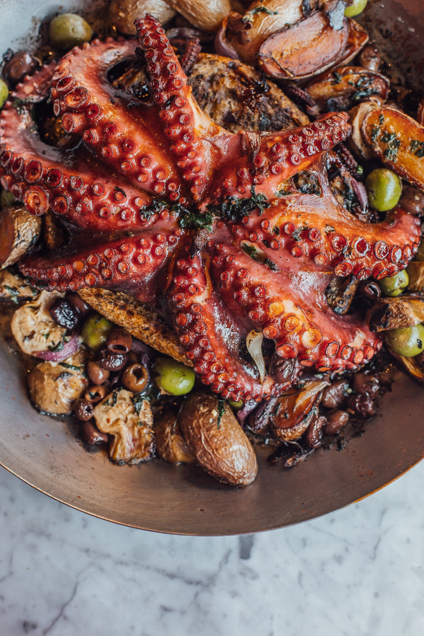 - кальмар, смажений у фритюрі з картоплею по-далматинськи – 384 грн.