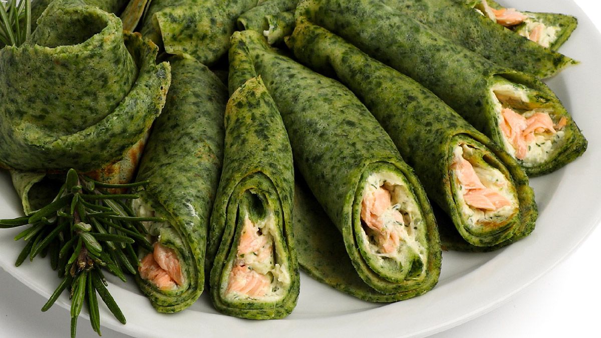 Хоча солодкі млинці асоціюються зі святом найчастіше, в українській кухні завжди були й ситні, солоні варіації. У сучасному виконанні це — шпинатні млинці з червоною рибою: легкі, збалансовані, з виразним смаком. Вони добре показують, якою Масниця може бути сьогодні.