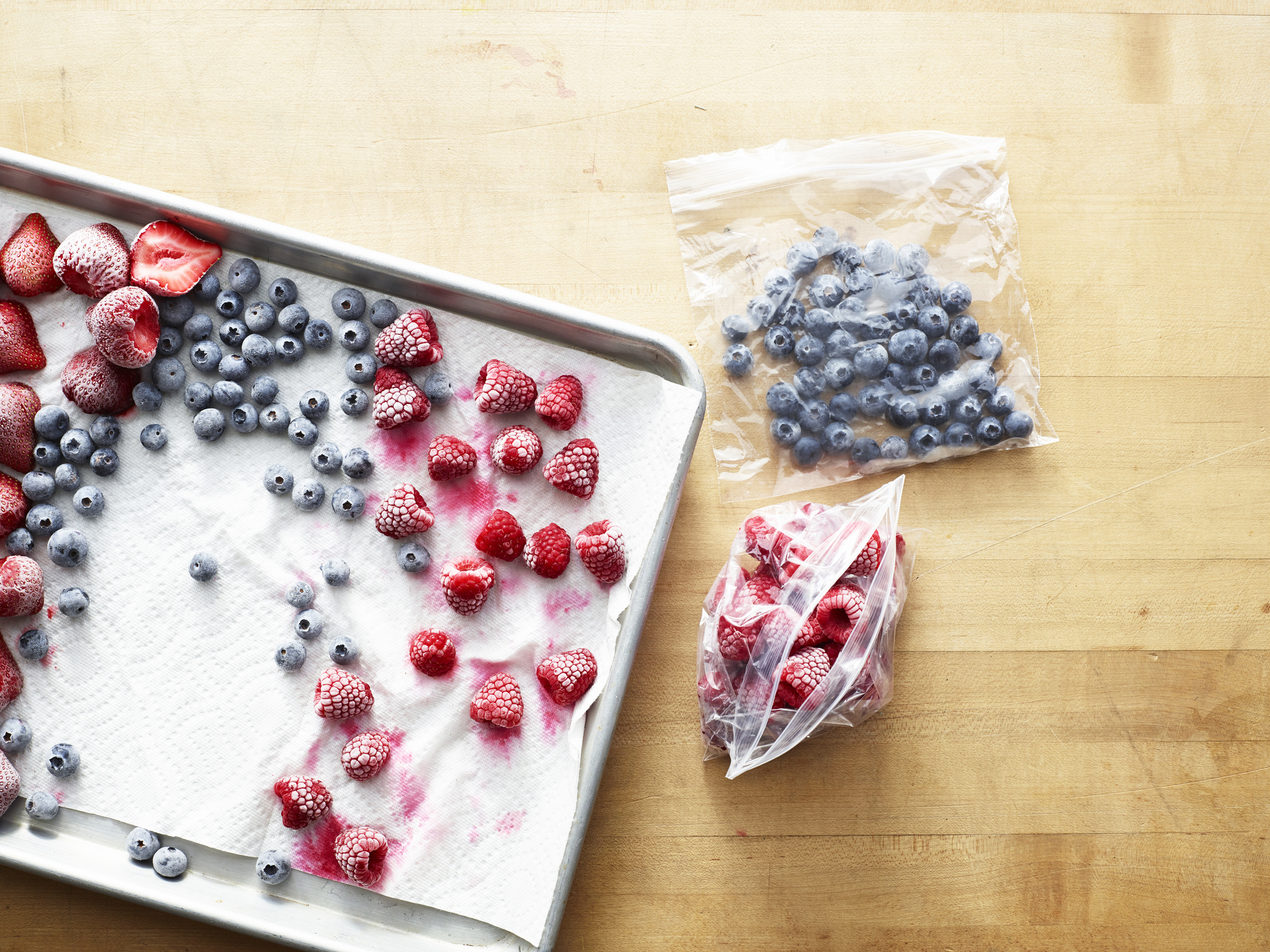 Для того, щоб під час заморозки ягоди мали свіжий та презентабельний вид, виклади їх на деко та постав у морозильну камеру на кілька годин. А після цього переклади у контейнер для зберігання.