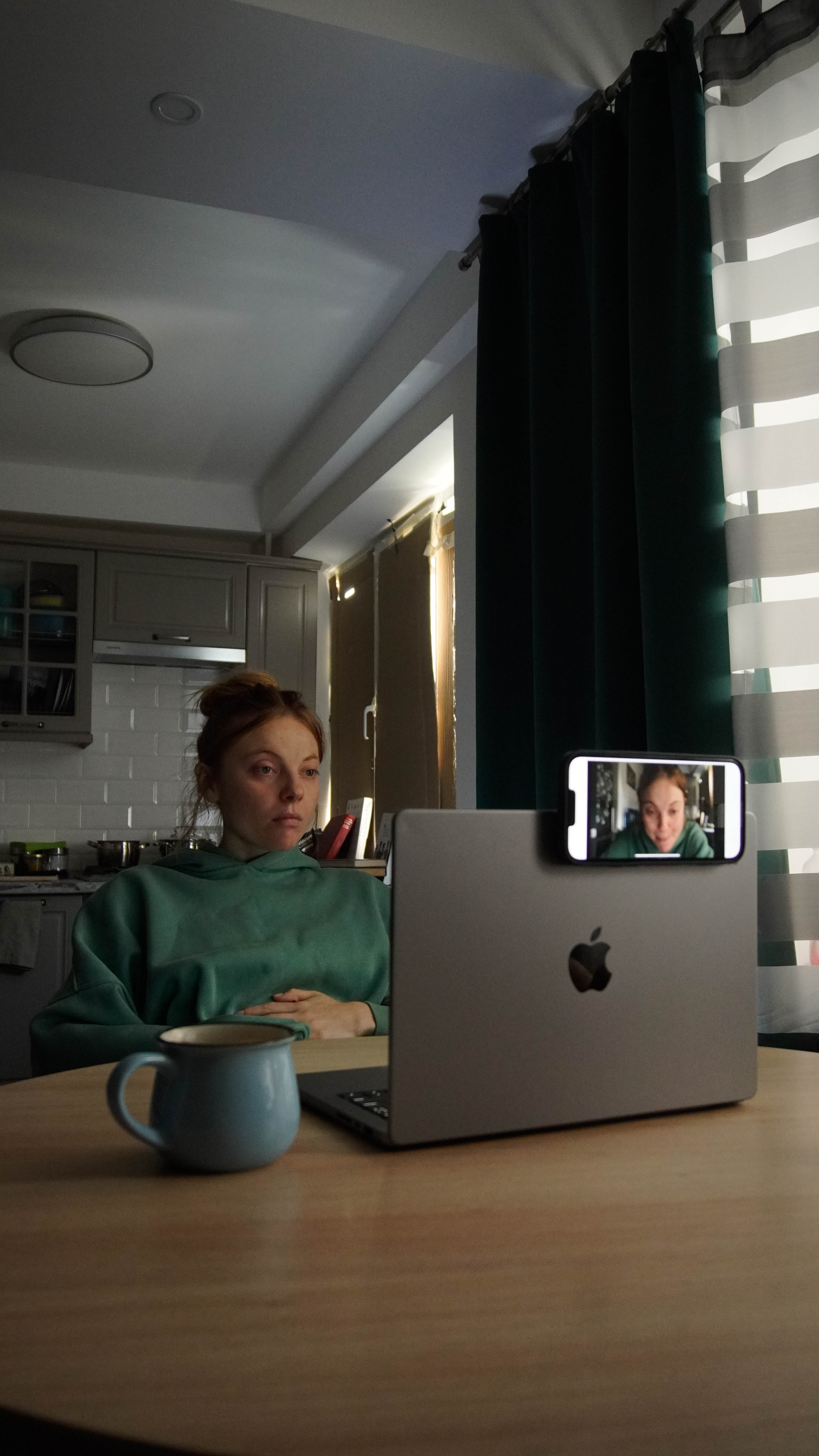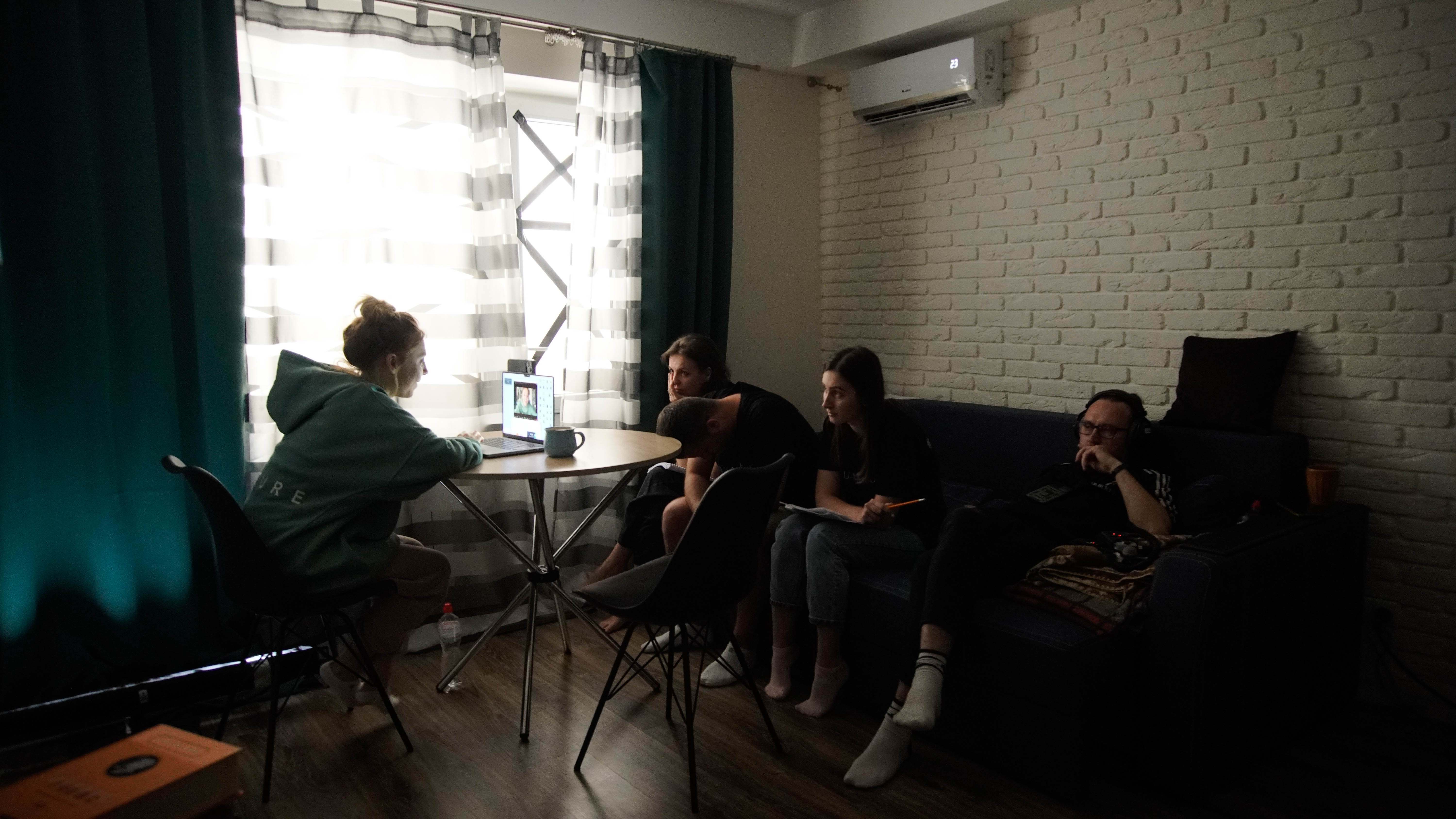У форматі скрінлайф знімання — не найдовший період. Найбільше часу в нас зайняв запис екрана. Ми не могли їздити одне до одного, бо всі жили за межами Києва, тому наша невеличка компанія з 4 людей приїхала до мене в будиночок під столицею — ми там жили разом і працювали над фільмом.