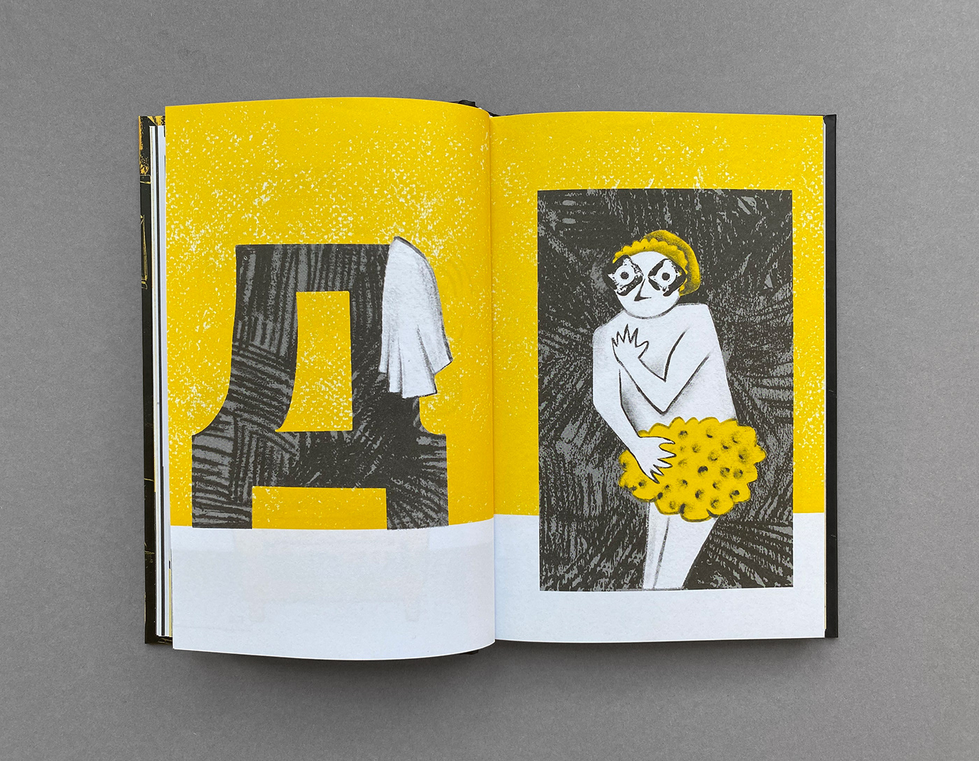 Я дуже люблю малюнок до буквиці Д. Він про те, як безглуздо приймати душ під час обстрілів. Адже гарячий душ має розслабляти і дарувати радість, але в цій ситуації ти напружений, та ще й мокрий.