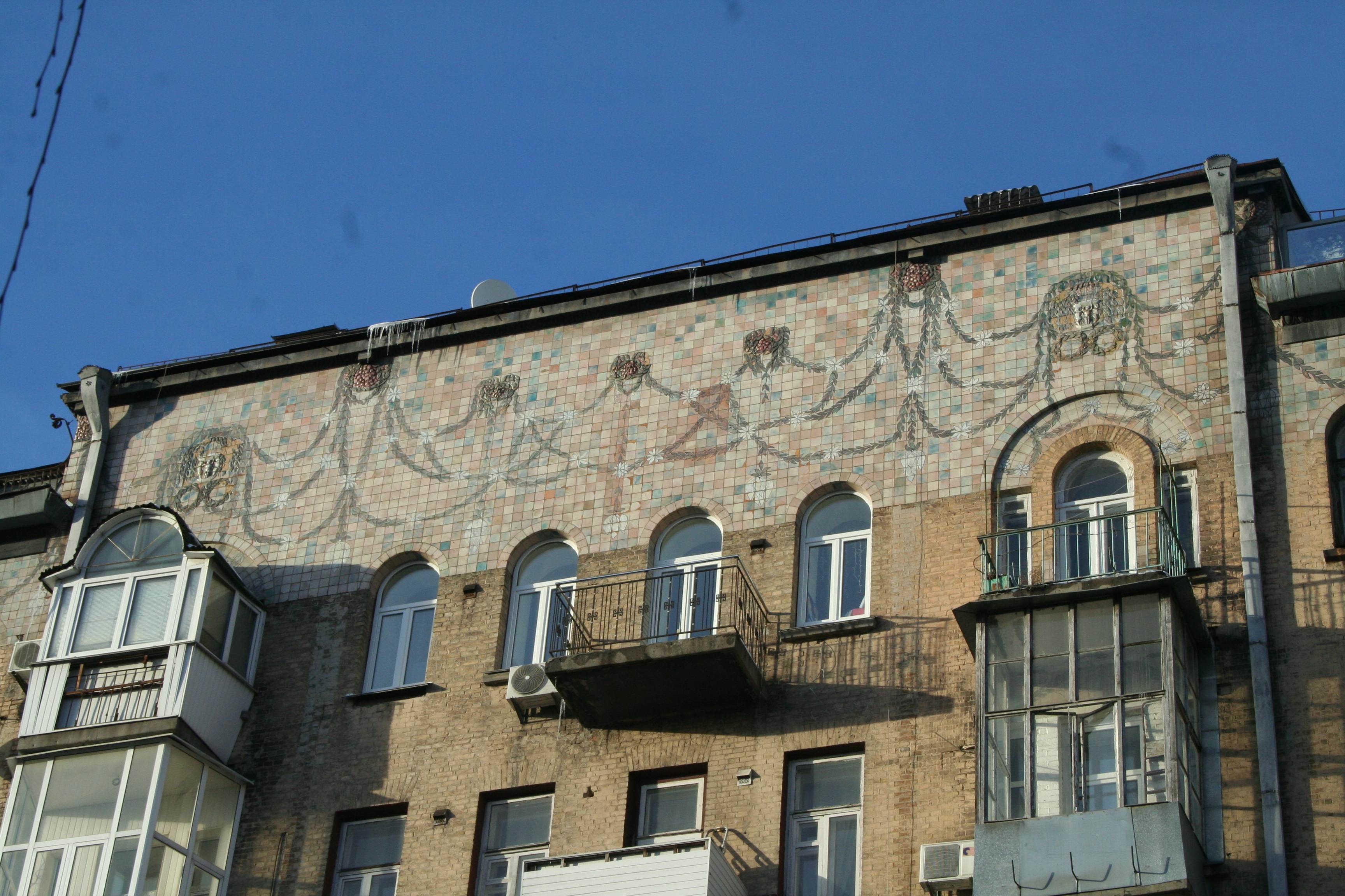 Серед пам'яток Києва кінця 19 – поч. 20 століття теж збереглися будинки, в яких кераміка є у вигляді облицювальних матеріалів та архітектурних елементів з теракоти та майоліки. Але їх дуже мало. Здебільшого керамічну плитку використовували як орнаментальний декор. Сюжетні композиції в Києві зустрічалися вкрай рідко. Нам відома лише одна така пам'ятка архітектури — будинок по вулиці Лютеранській, 15 (1908 рік, архітектор О. М. Вербицький), фасад якого прикрашає унікальне для Києва панно з поліхромної майолікової плитки. Його сюжет ілюструє давньогрецький міф "Пан і Сірінга".