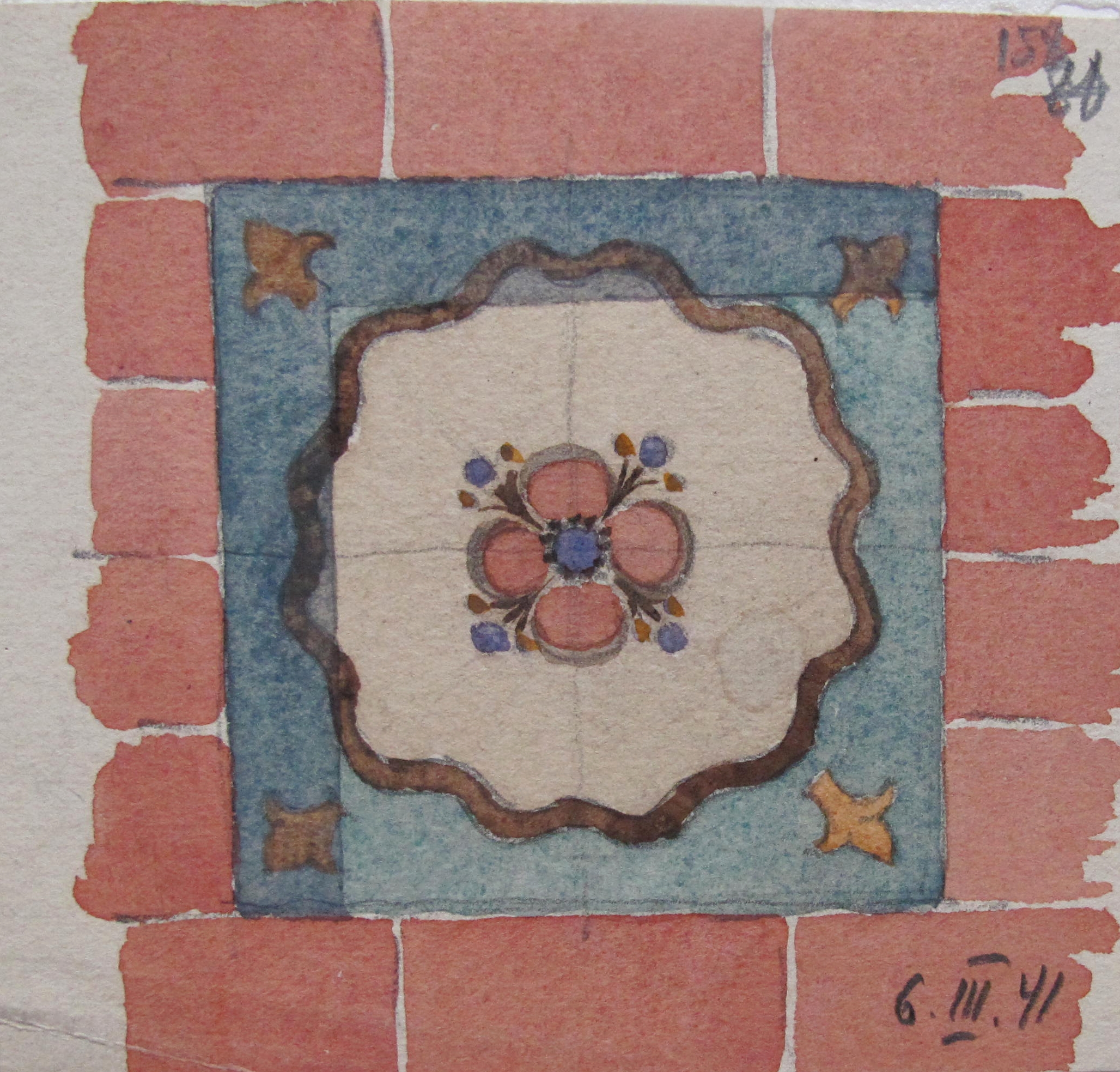 У проєкт будинку по вулиці Рейтарській, 4-6 (1940−1941 роки, не побудований) Альошин ввів майолікові рельєфні панно з українськими народними мотивами.