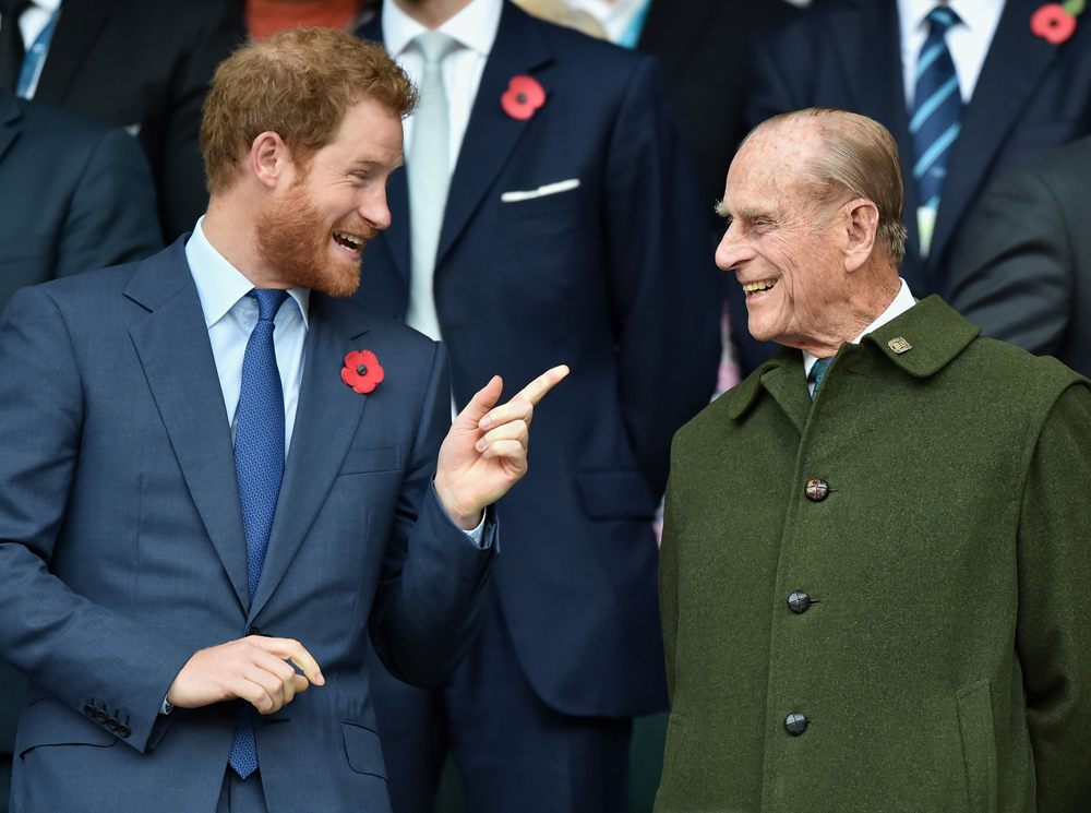 Принц Гаррі разом із дідусем, принцом Філіпом, на регбійному матчі. Фото: people.com