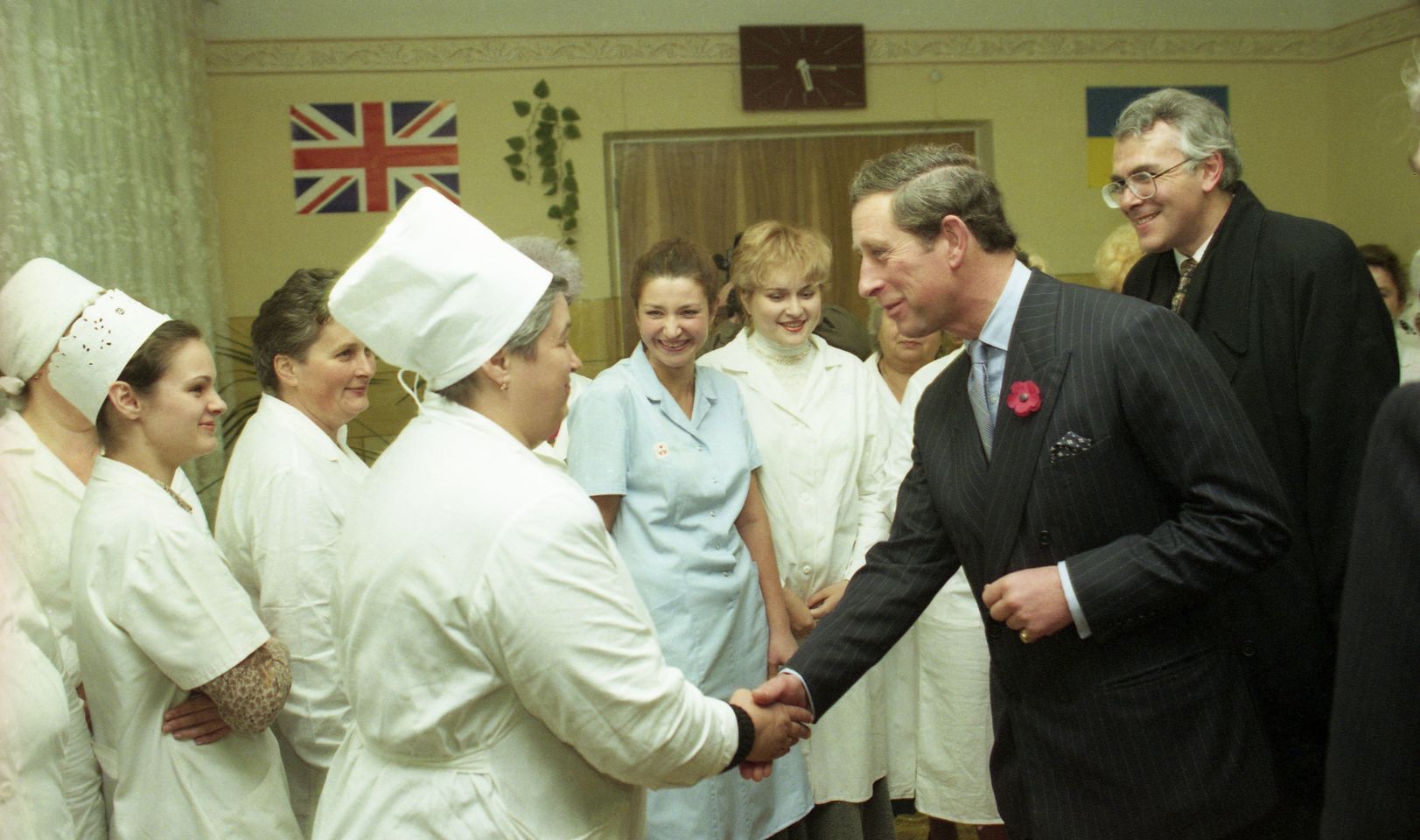 У листопаді 1996 року принц Чарльз відвідав Україну із триденним візитом. Спершу спадкоємець королівського престолу з'явився на бізнес-форумі, який відбувся в Національному університеті Києво-Могилянська академія. Завдяки пресі того часу можемо дізнатися, що на тому заході обговорювали, "як зробити бізнес в Україні етичним, щоб "бізнесмен" було словом, яке викликає повагу".