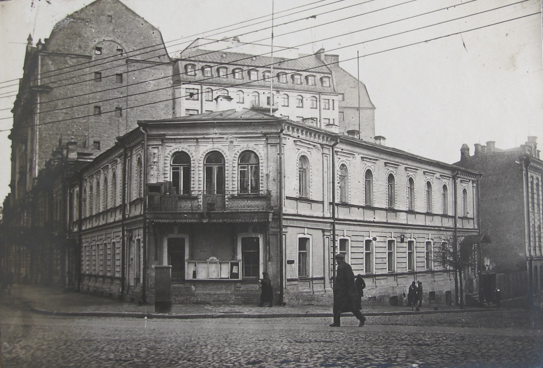 Під час будівництва у 1955-1956 роках житлового будинку співробітників обкому та міськкому компартії України (вул. Володимирська, 19а) його знесли. Тоді вперше загроза нависла і над кутовим будинком. 1954 року з'явилася пропозиція знести його і замінити шестиповерховим з мансардою (архітектор О. І. Черкаський, 1954 рік).